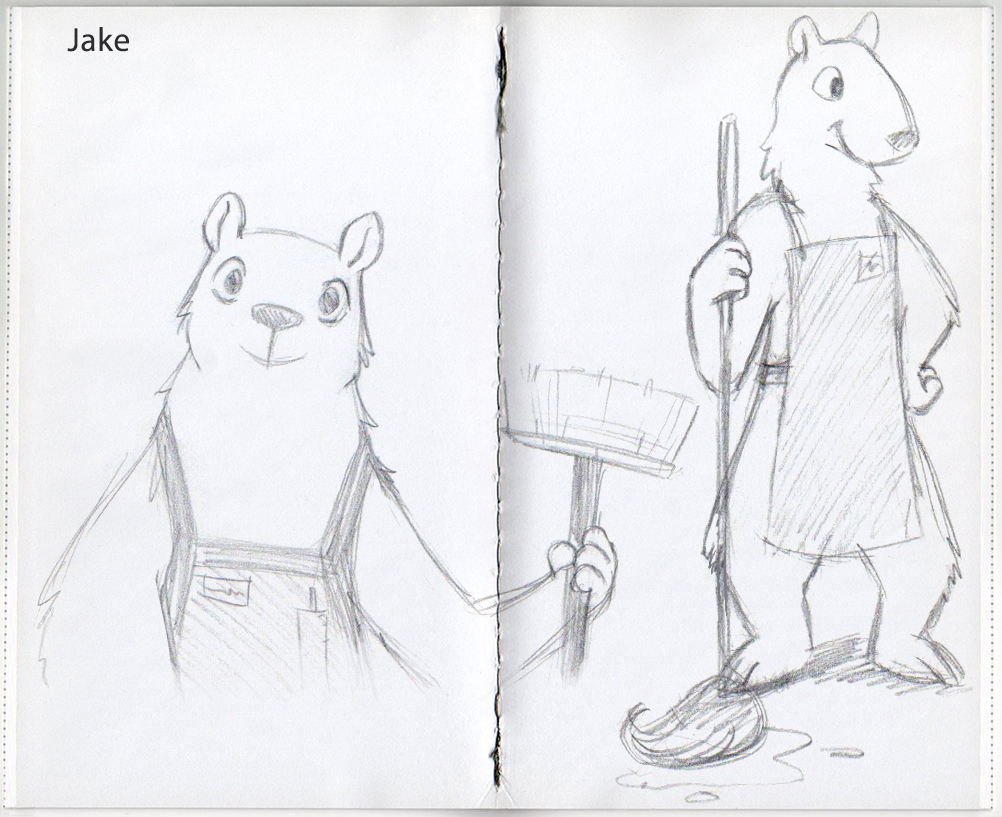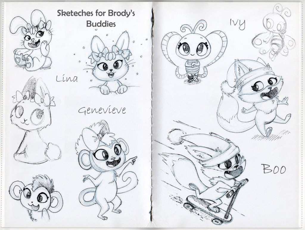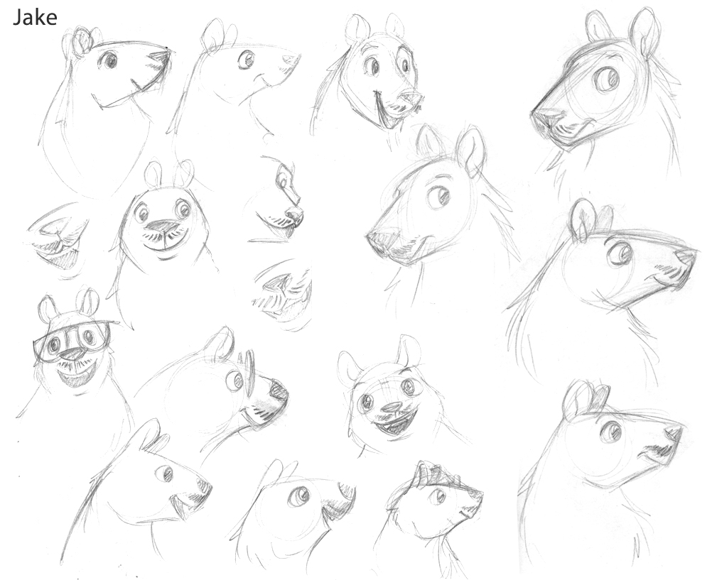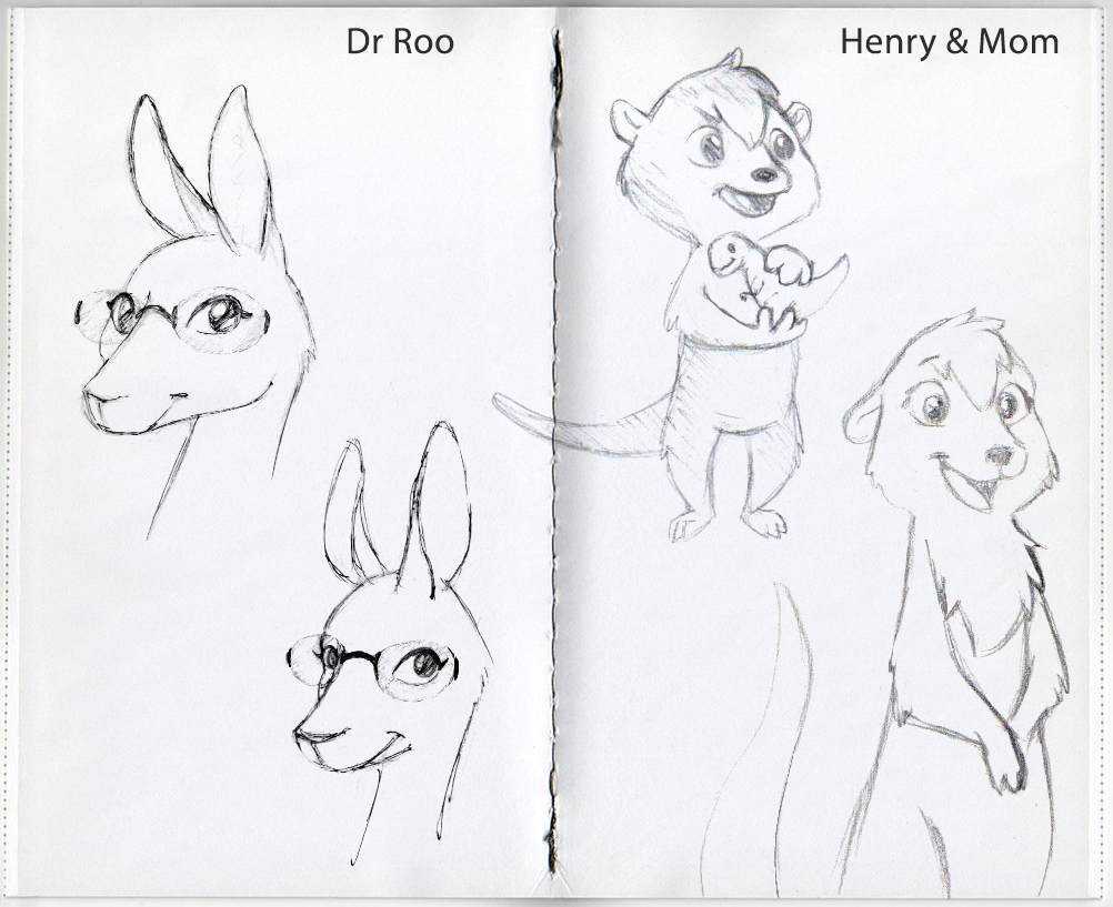 Character sketches for Jake, Dr Roo, Boo, Henry & Mom, Brody Mom & Dad and Genevieve.