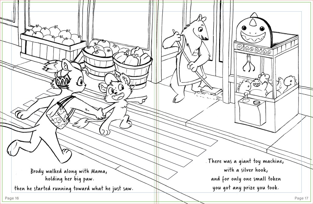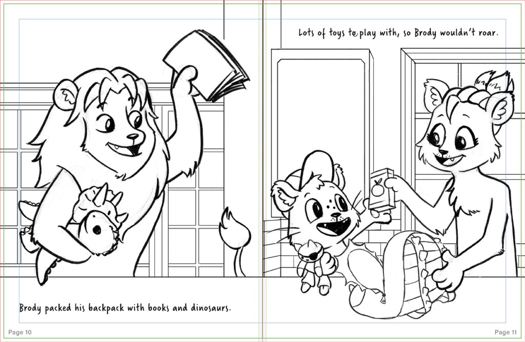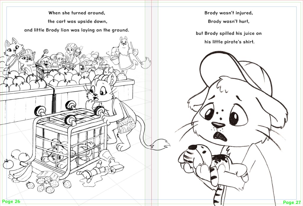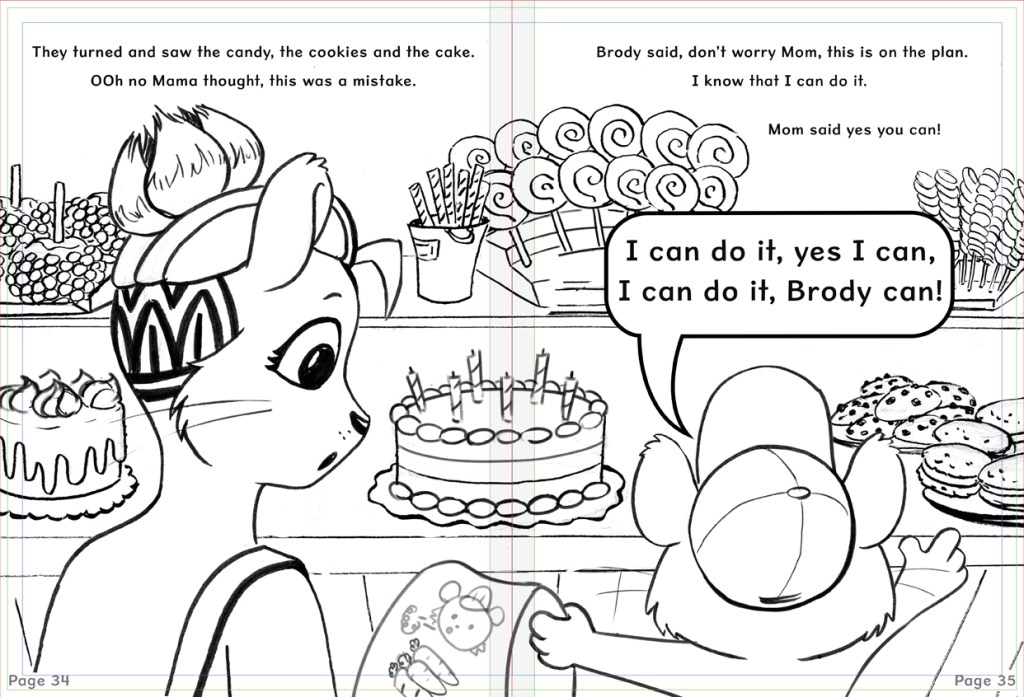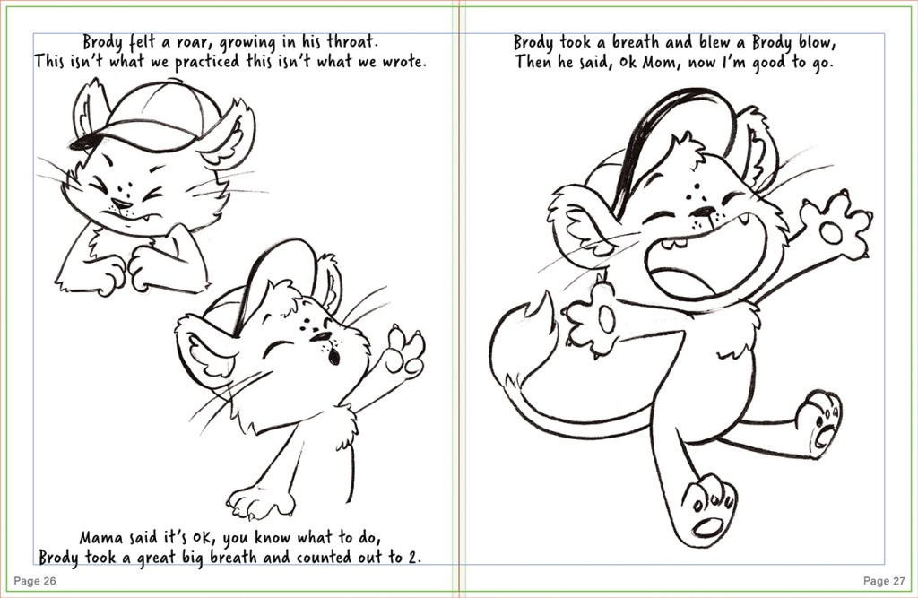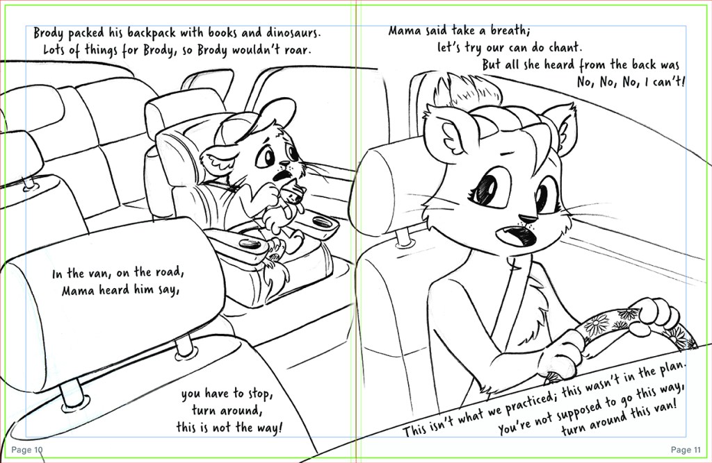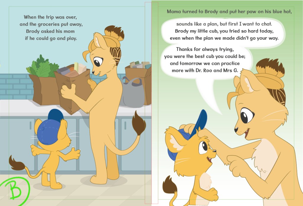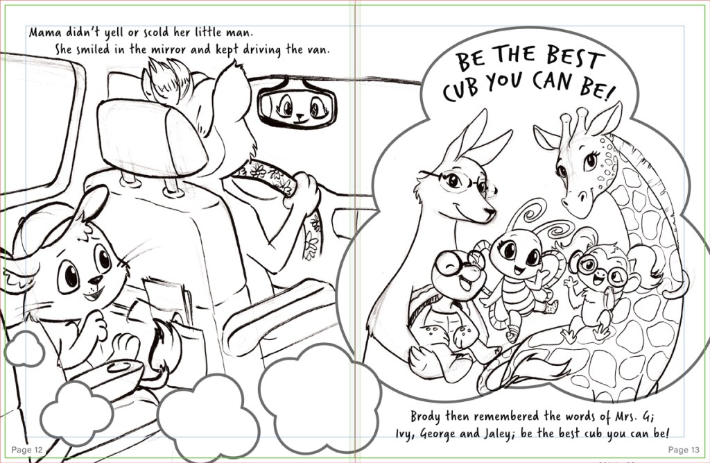 Changes to the cover and inside title page. I’ve created Pages 10, 11, 12, 13 and I’ve changed Brody’s mum’s hair color a bit to vary from her fur color. Pages 12 and 13 I’ve uploaded two of them with different text layout.