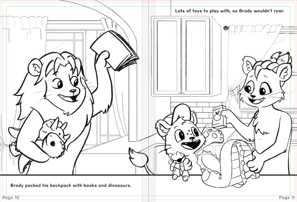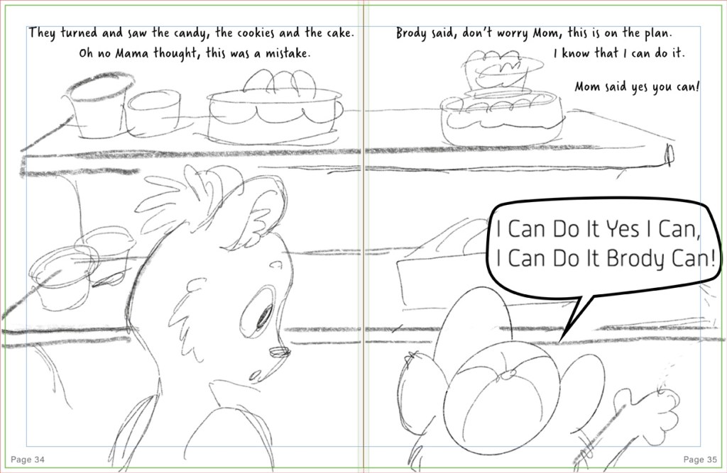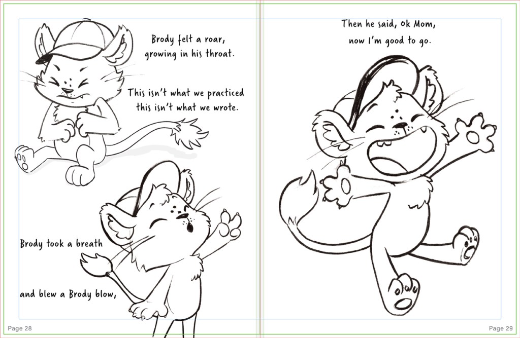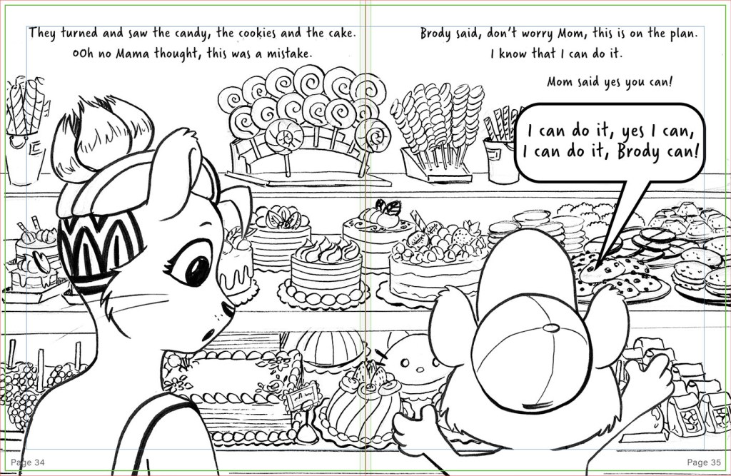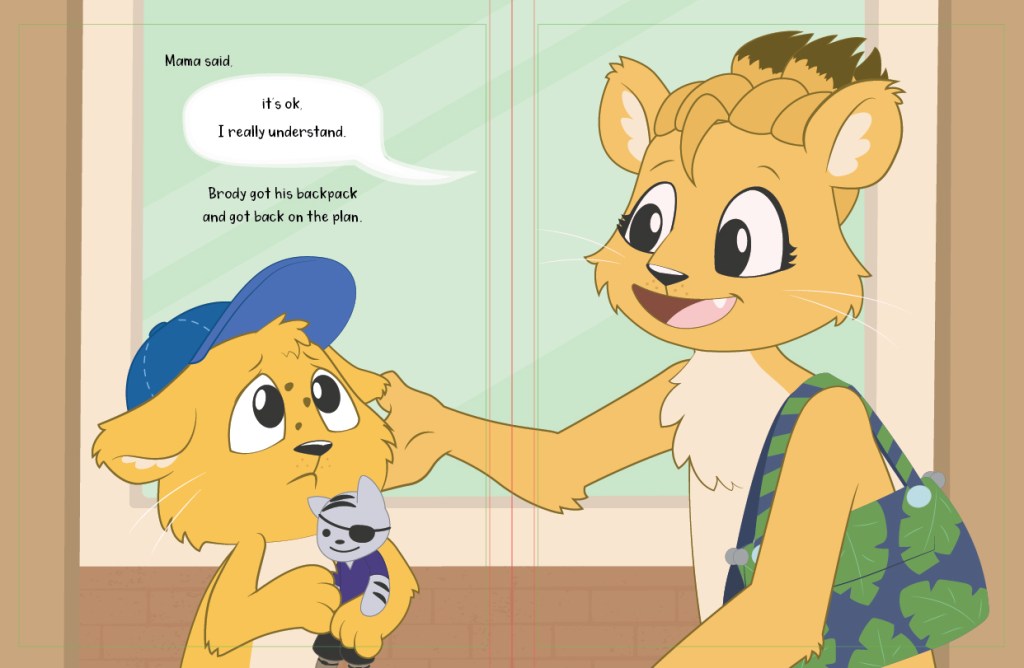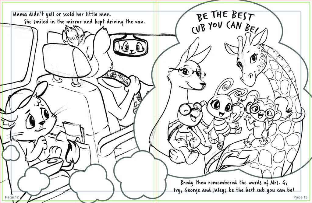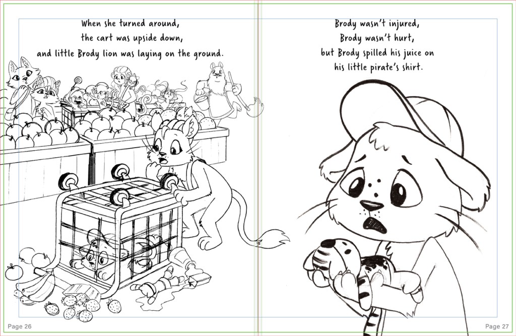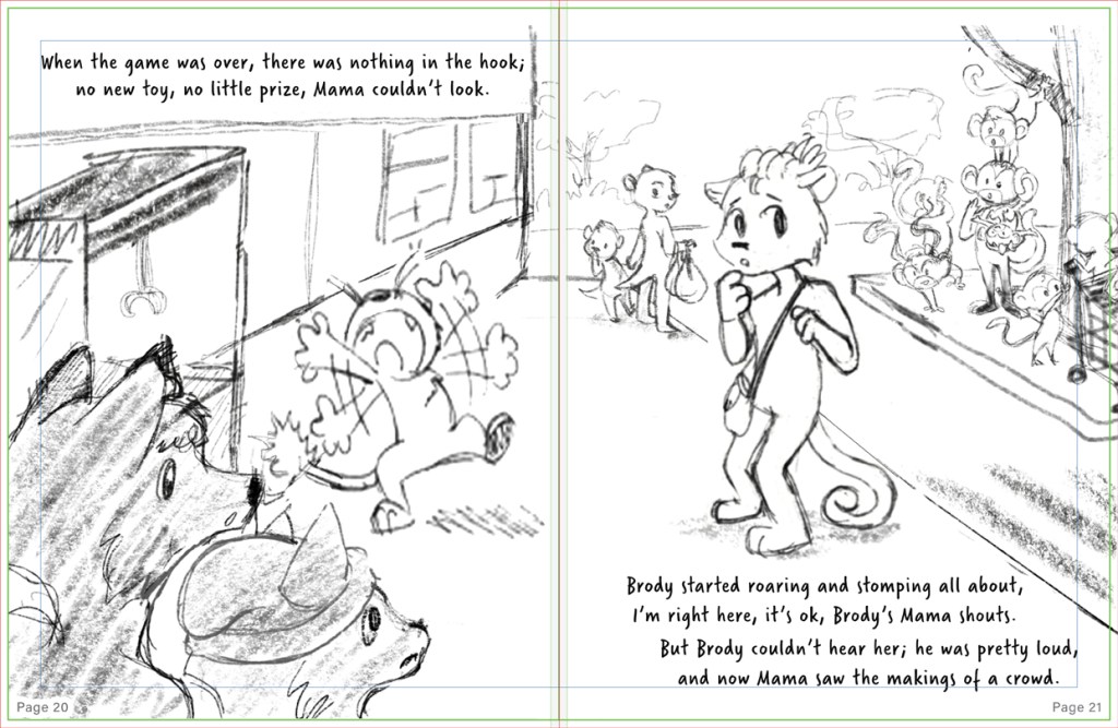 Changes to the cover and inside title page. I’ve created Pages 10, 11, 12, 13 and I’ve changed Brody’s mum’s hair color a bit to vary from her fur color. Pages 12 and 13 I’ve uploaded two of them with different text layout.
