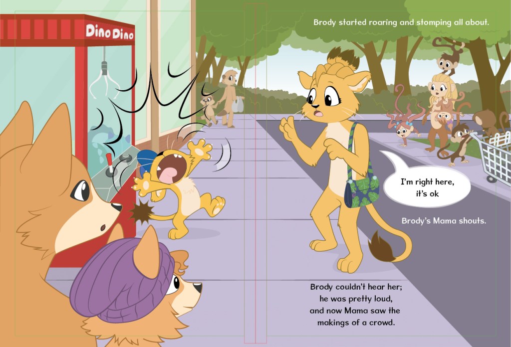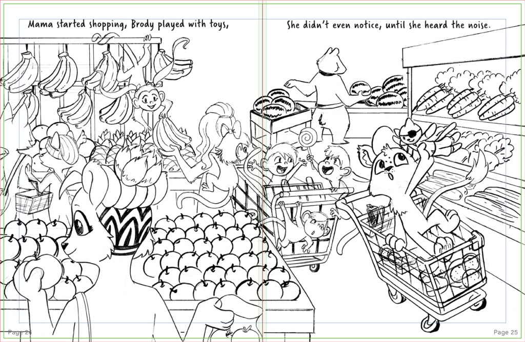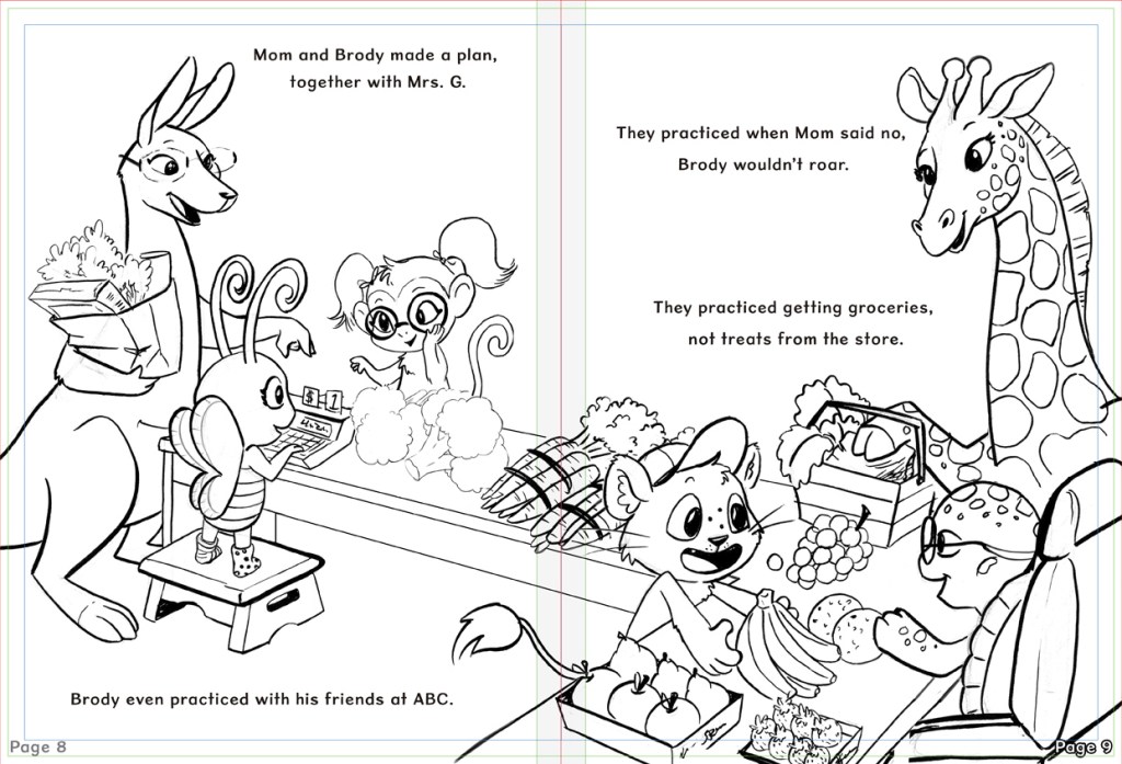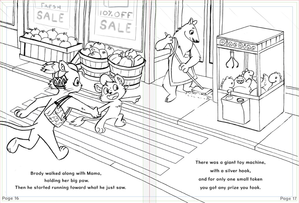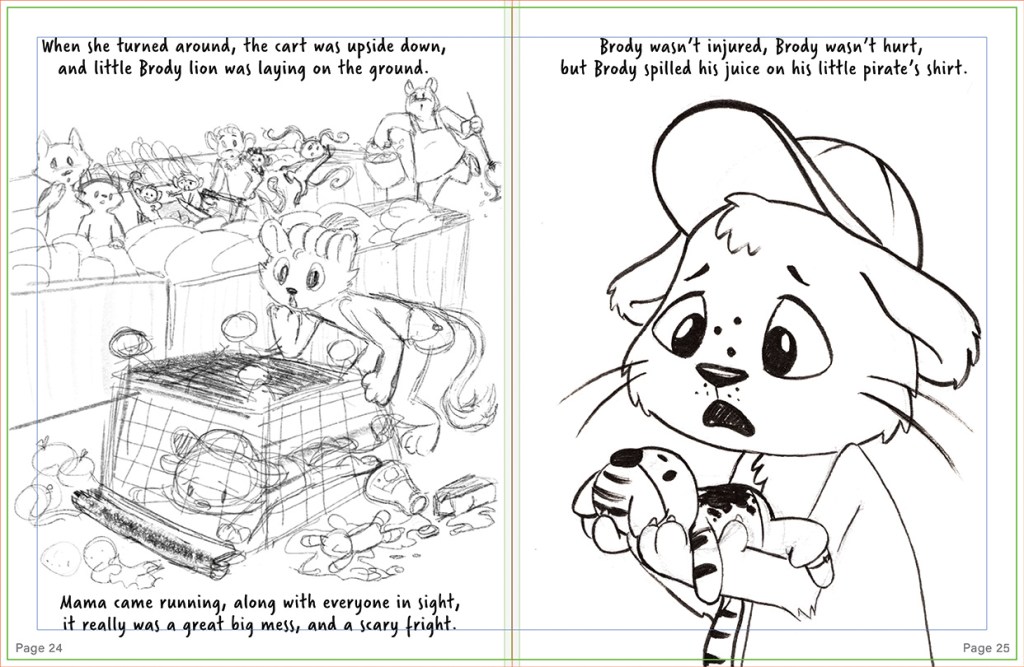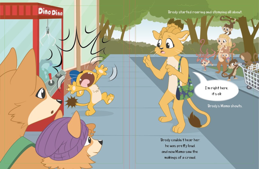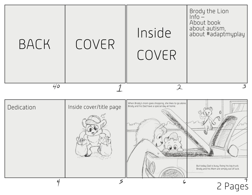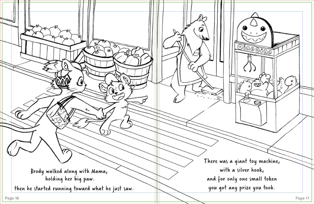 Changes to the cover and inside title page. I’ve created Pages 10, 11, 12, 13 and I’ve changed Brody’s mum’s hair color a bit to vary from her fur color. Pages 12 and 13 I’ve uploaded two of them with different text layout.