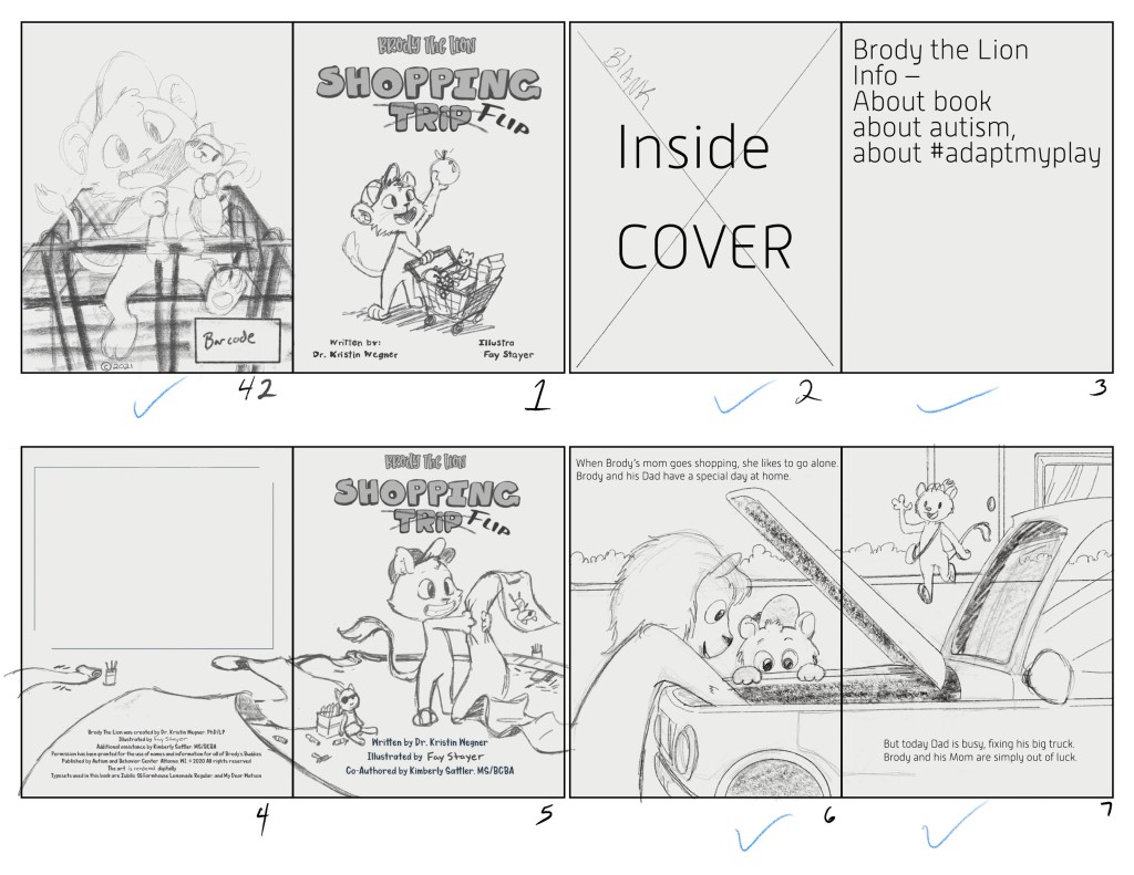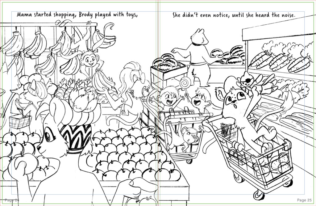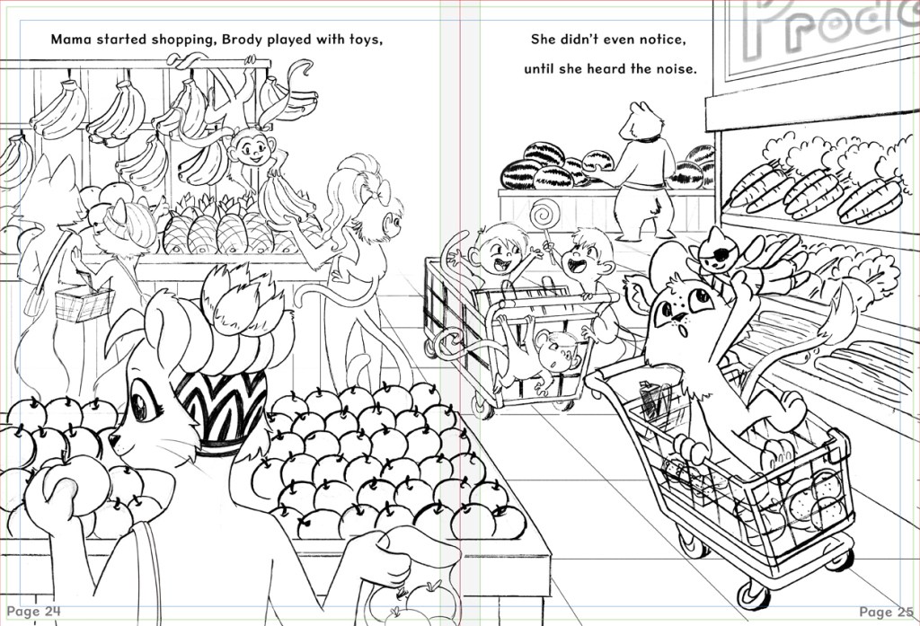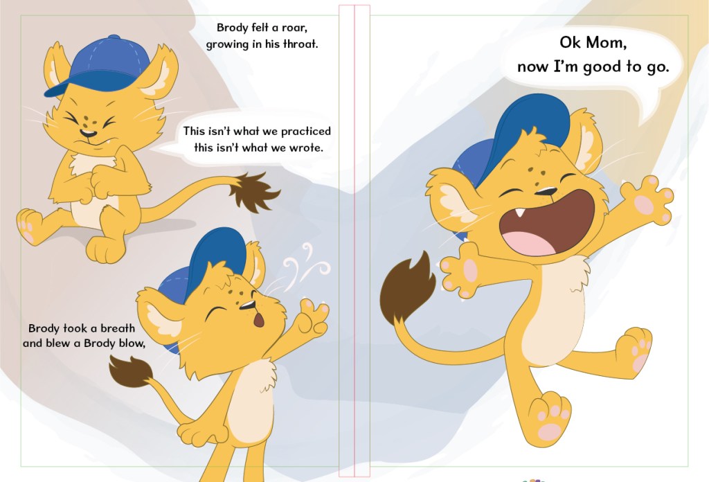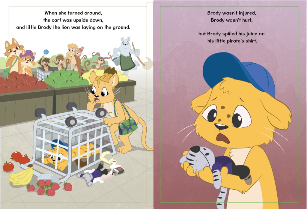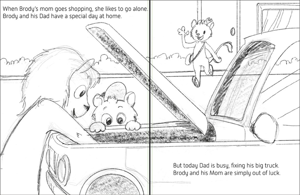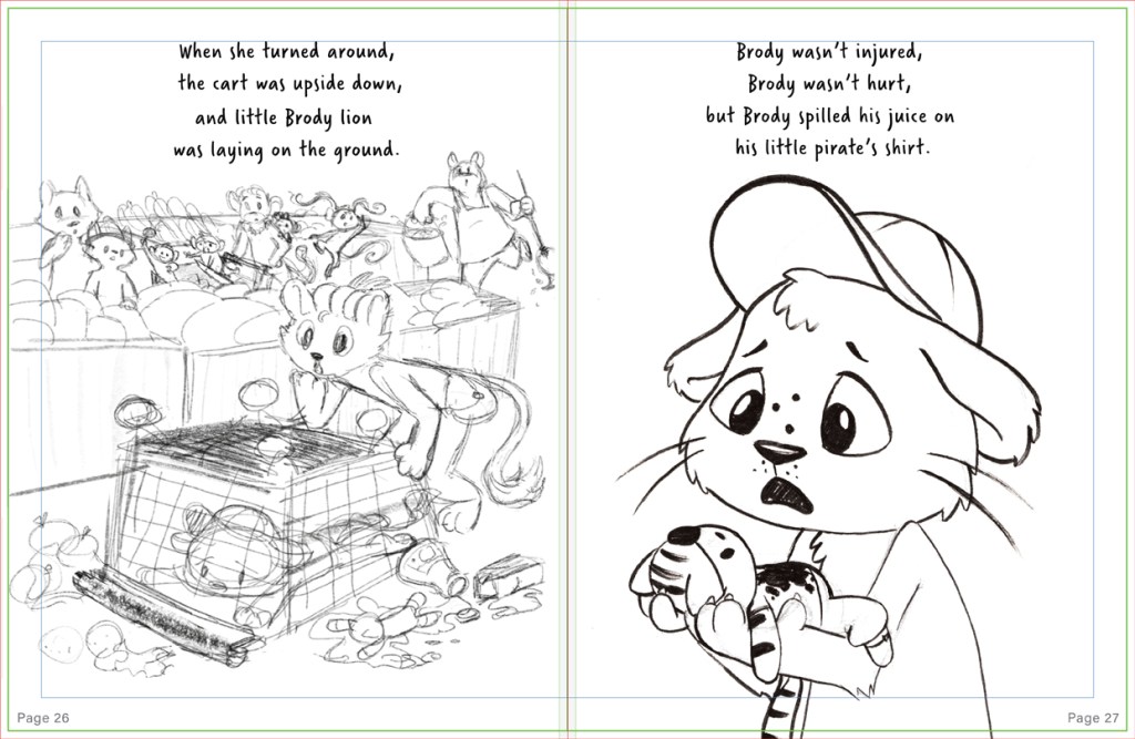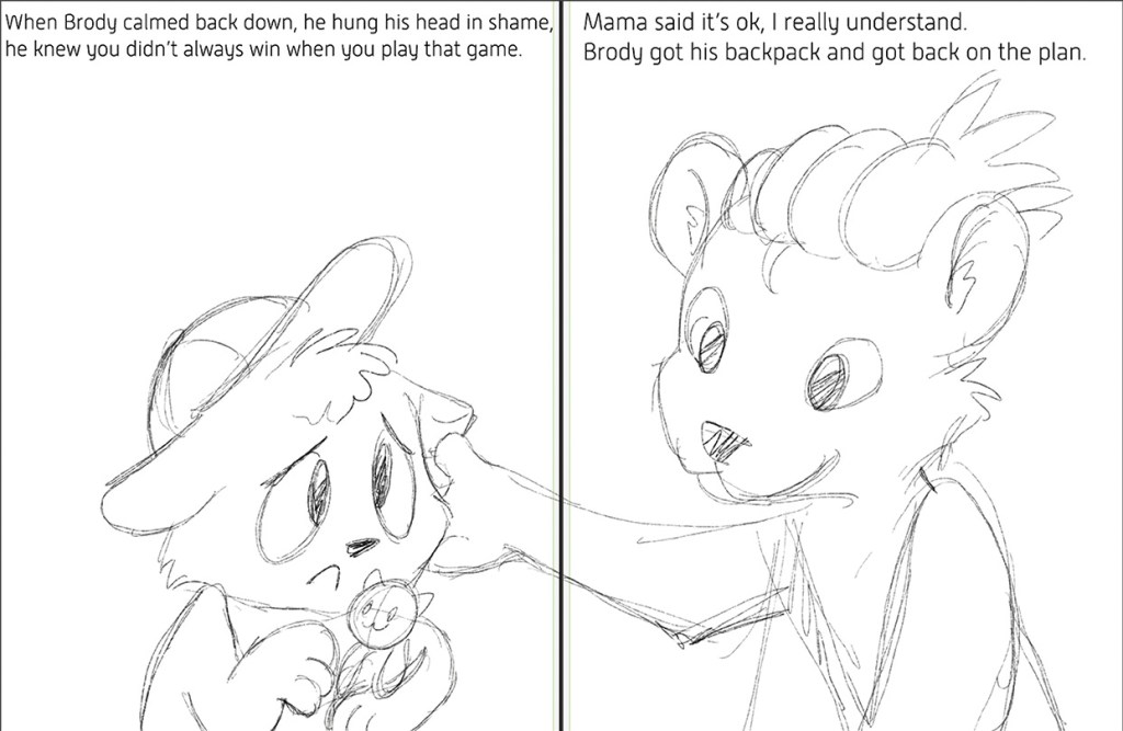 Changes to the cover and inside title page. I’ve created Pages 10, 11, 12, 13 and I’ve changed Brody’s mum’s hair color a bit to vary from her fur color. Pages 12 and 13 I’ve uploaded two of them with different text layout.