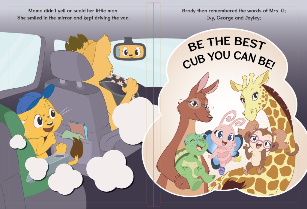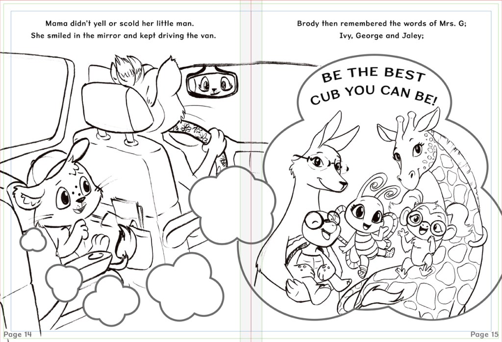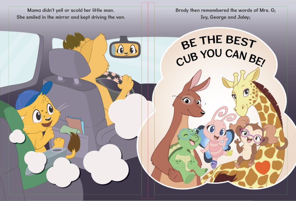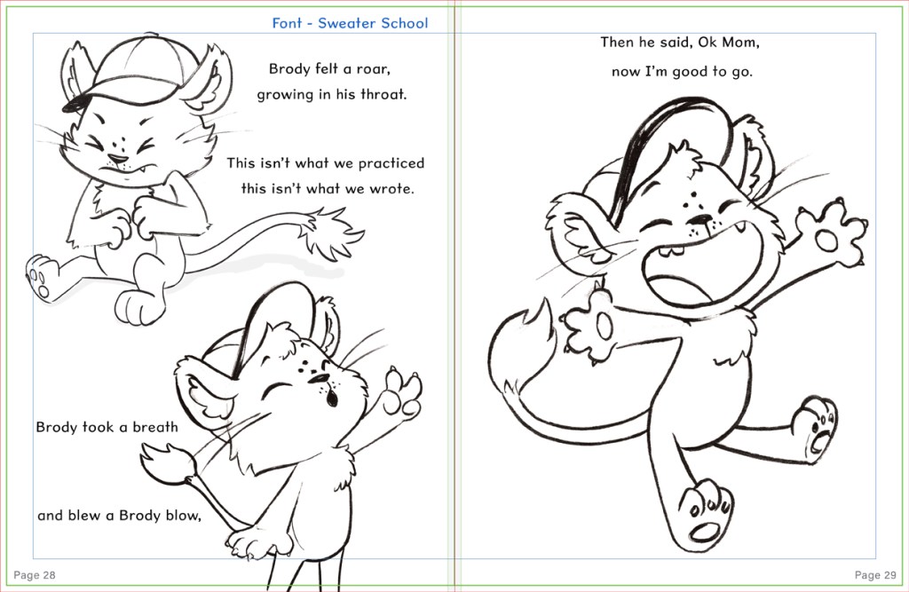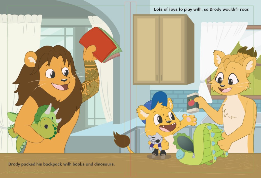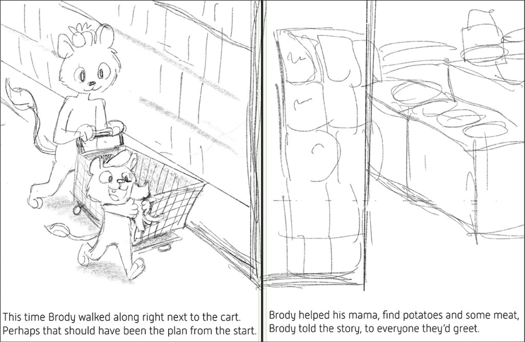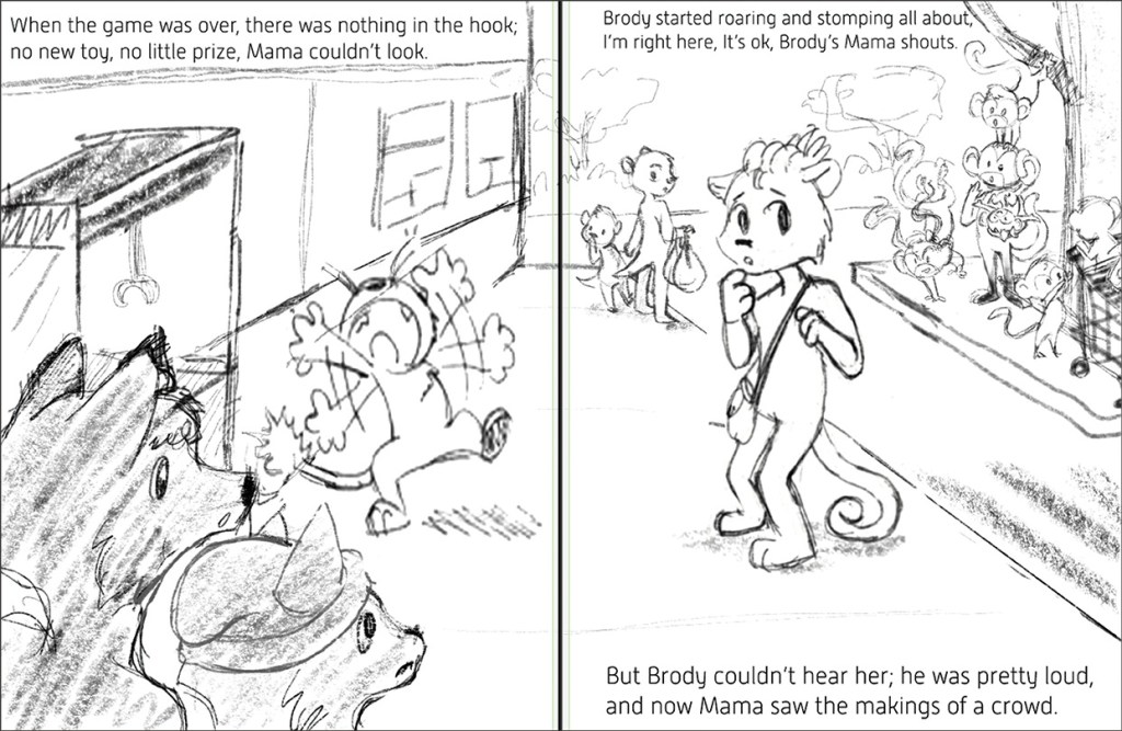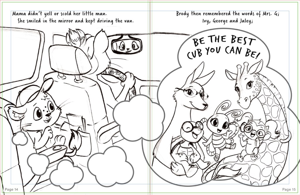Changes to the cover and inside title page. I’ve created Pages 10, 11, 12, 13 and I’ve changed Brody’s mum’s hair color a bit to vary from her fur color. Pages 12 and 13 I’ve uploaded two of them with different text layout.