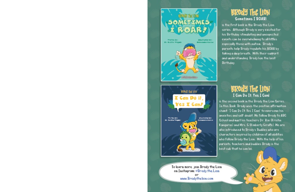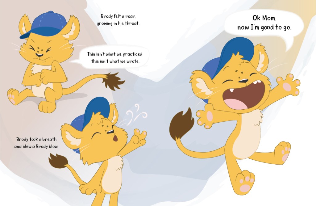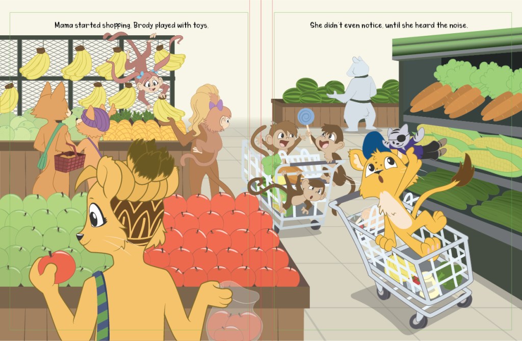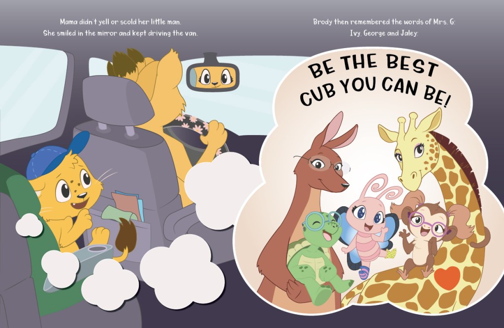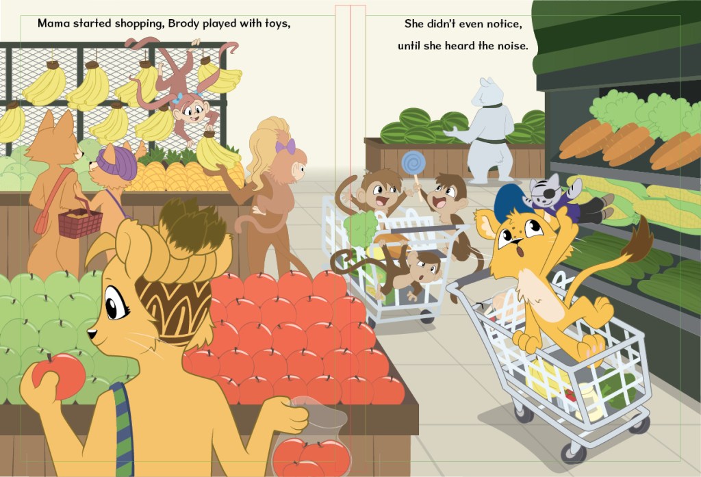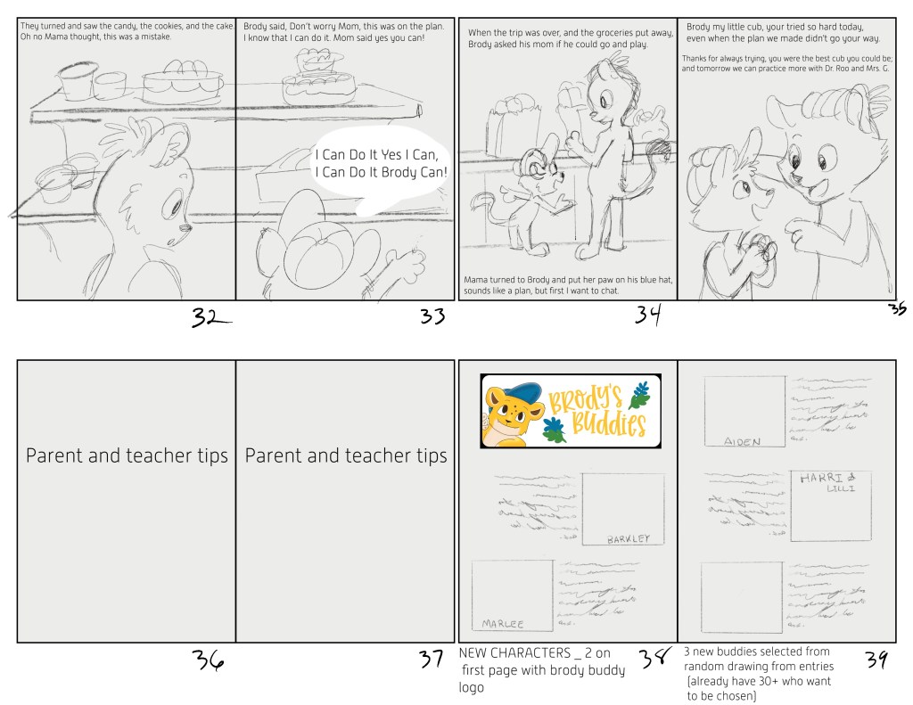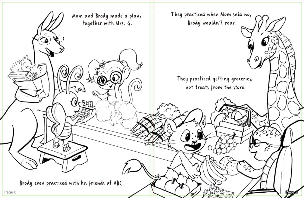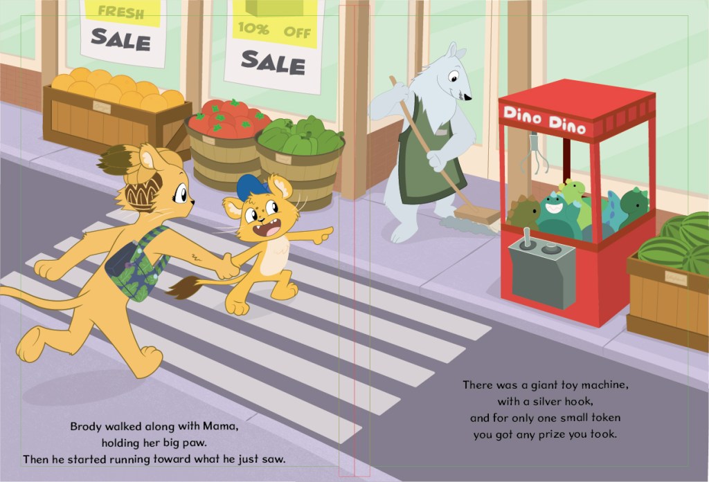 Changes to the cover and inside title page. I’ve created Pages 10, 11, 12, 13 and I’ve changed Brody’s mum’s hair color a bit to vary from her fur color. Pages 12 and 13 I’ve uploaded two of them with different text layout.