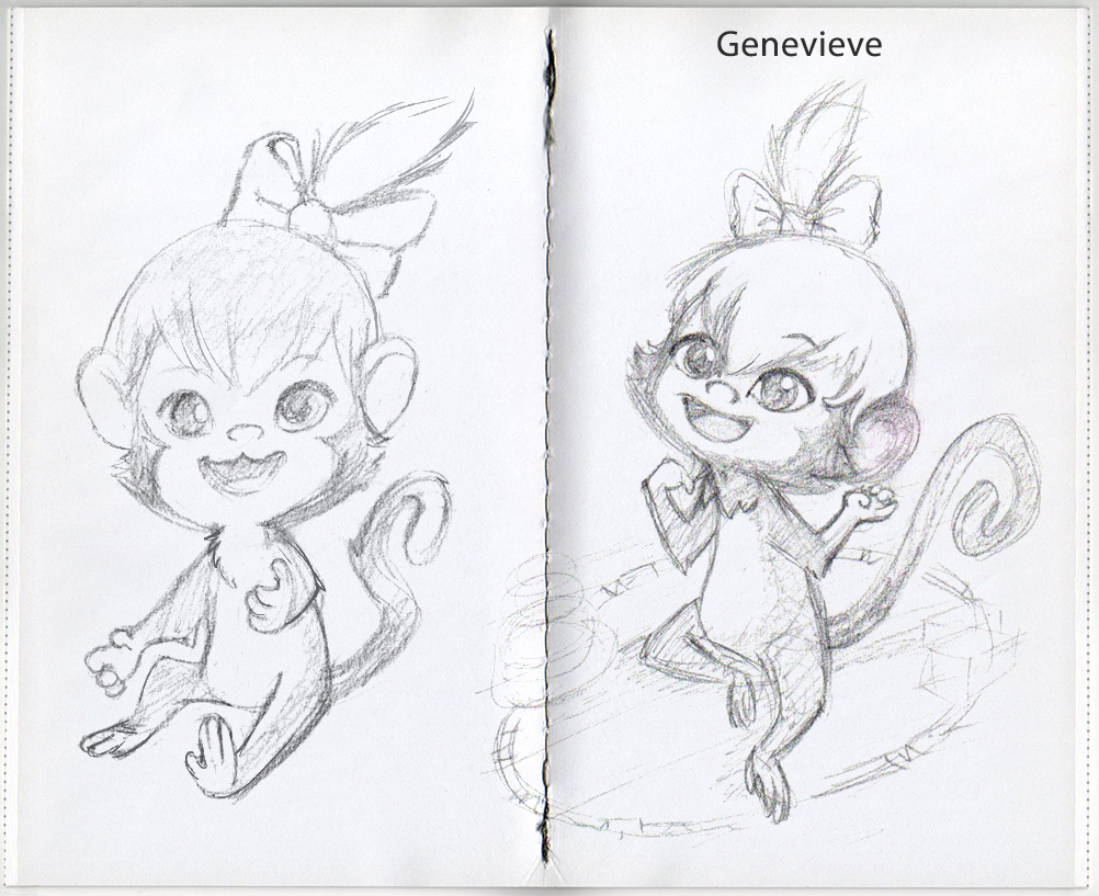 I’m starting character sketches and below are some pieces for Genevieve and George.