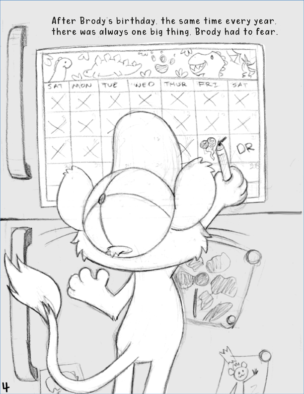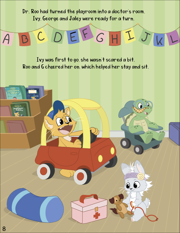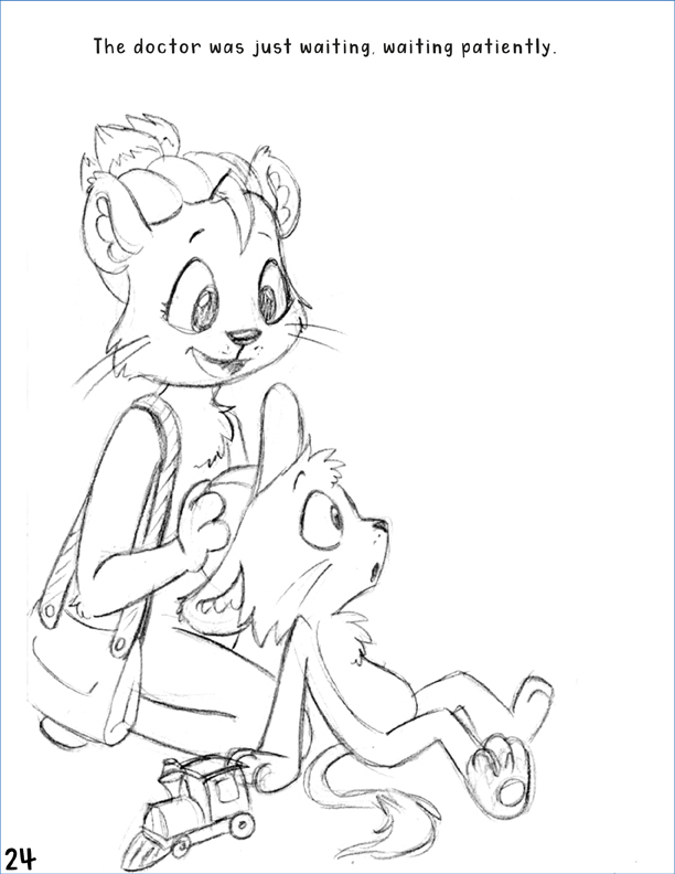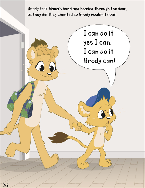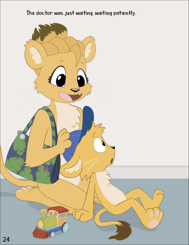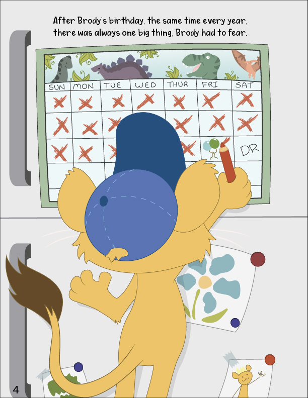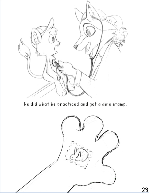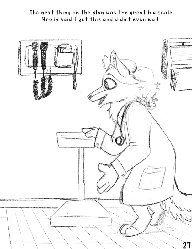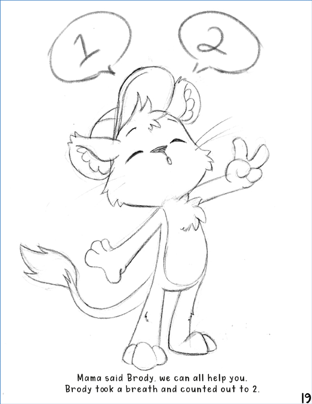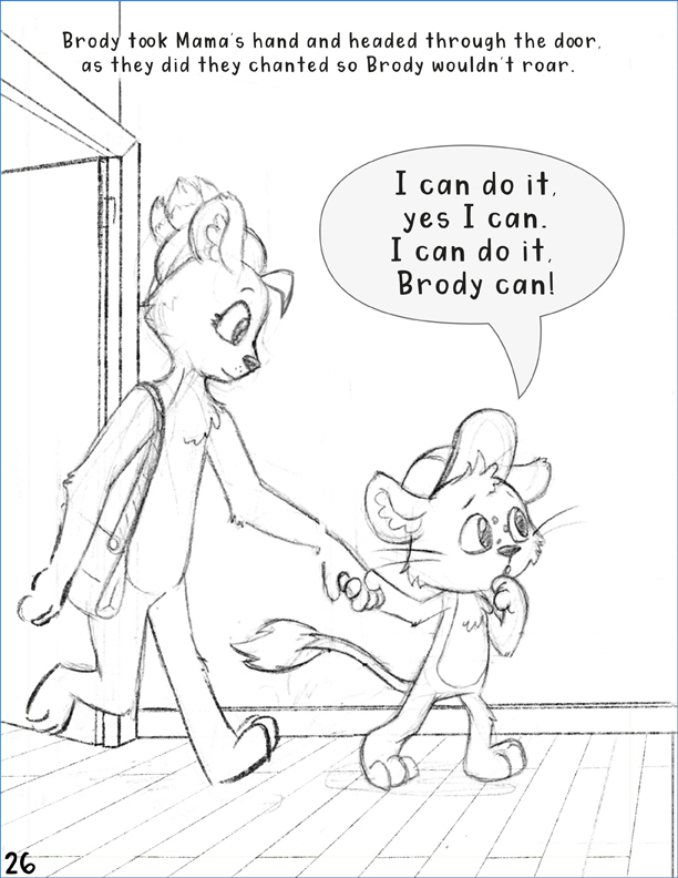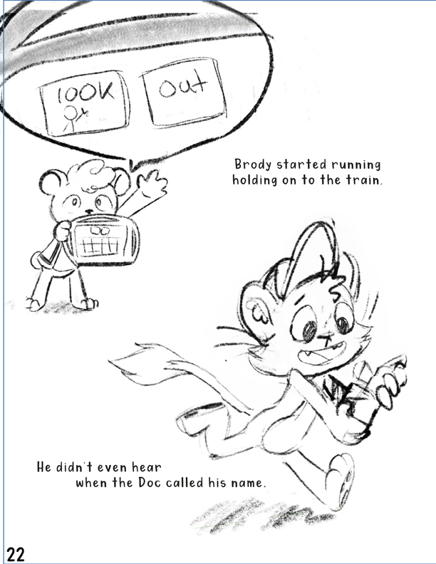 Brody the Lion Meets the Doc March 9 2022 All pages colored. This will be the last page. Page 38 The above is placeholder text for dedication from the previous book. Going to try a white font color. Dr Kennedy’s neck has been lengthened a bit in the close up of her. BLT – page text updates.