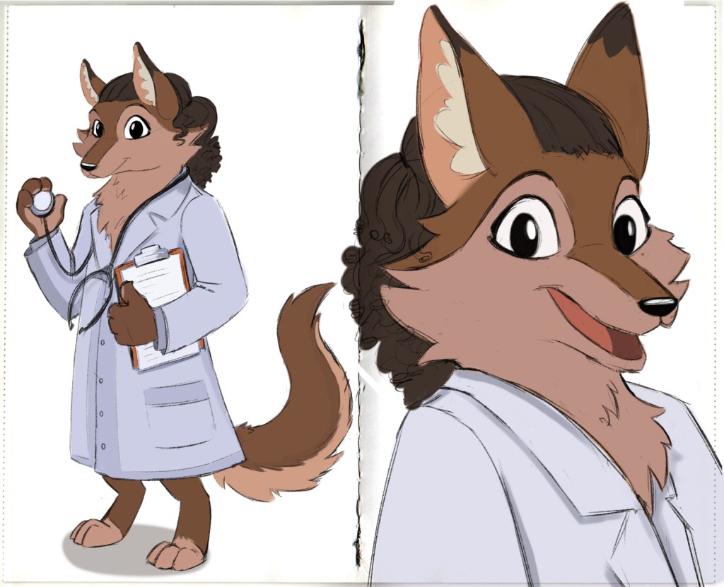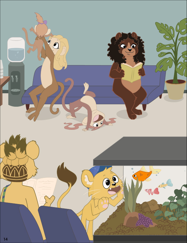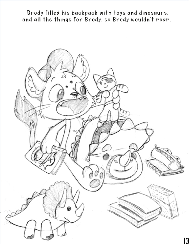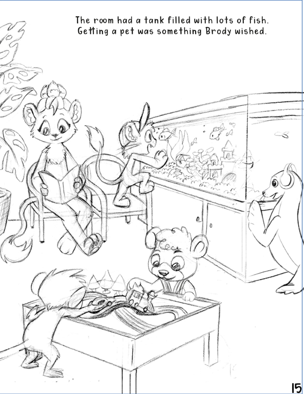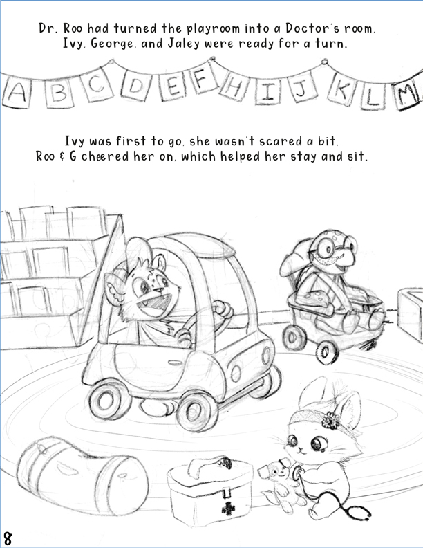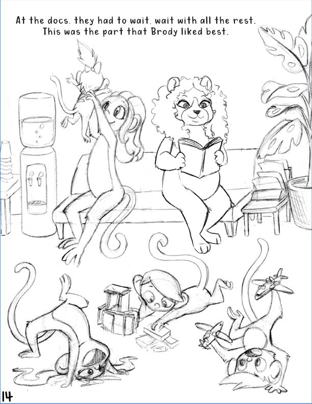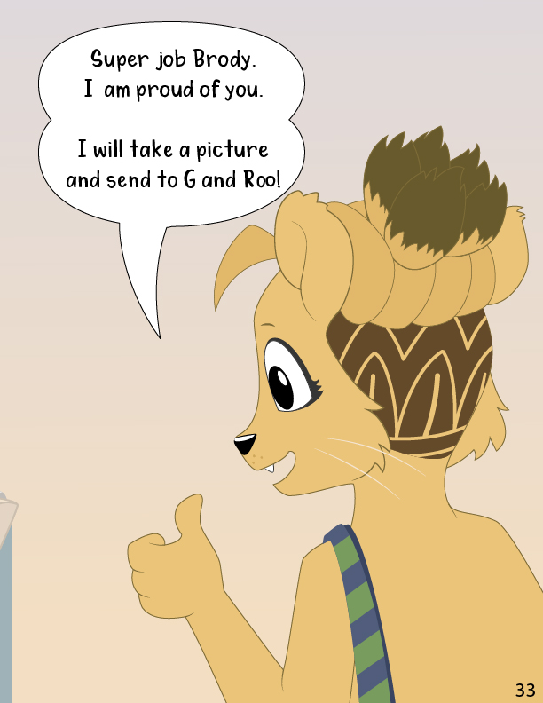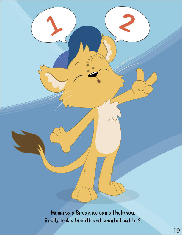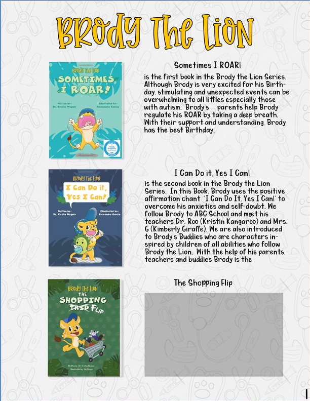 Brody the Lion Meets the Doc March 9 2022 All pages colored. This will be the last page. Page 38 The above is placeholder text for dedication from the previous book. Going to try a white font color. Dr Kennedy’s neck has been lengthened a bit in the close up of her. BLT – page text updates.