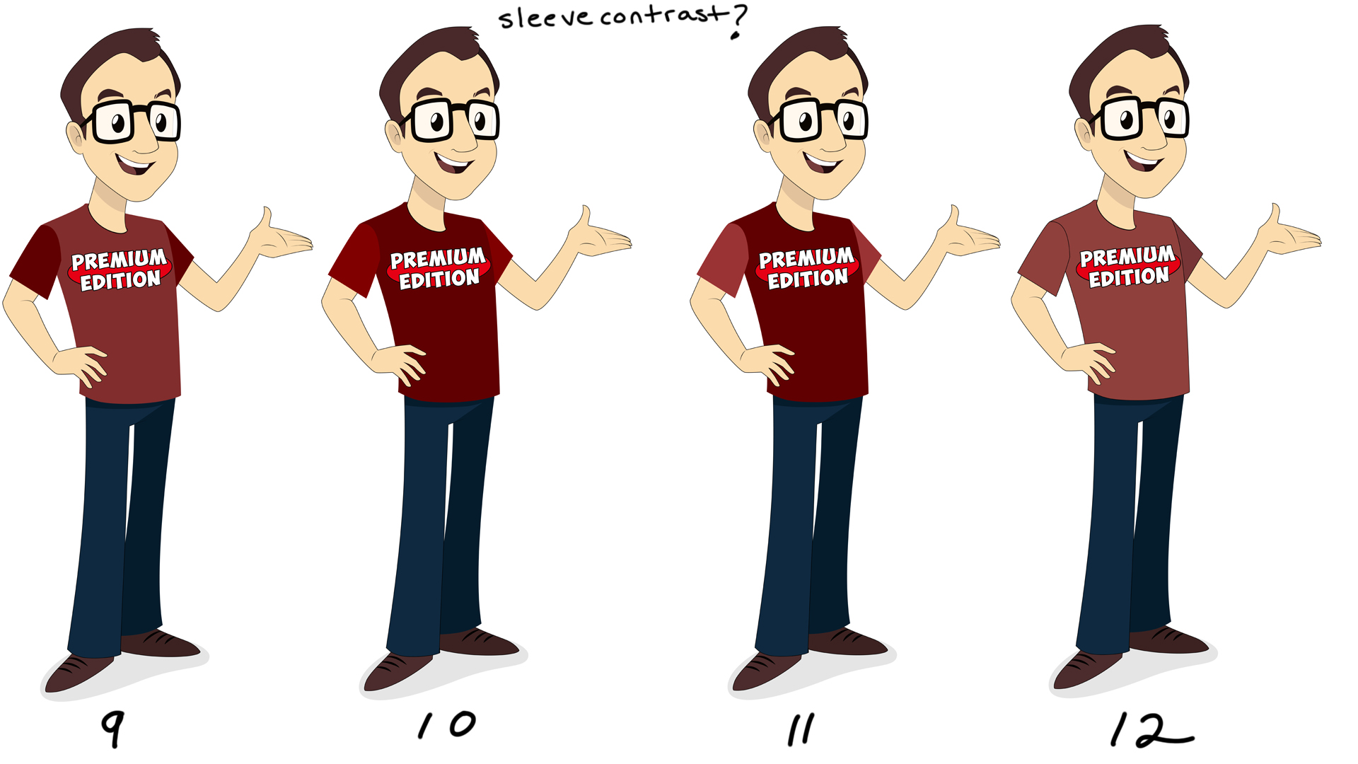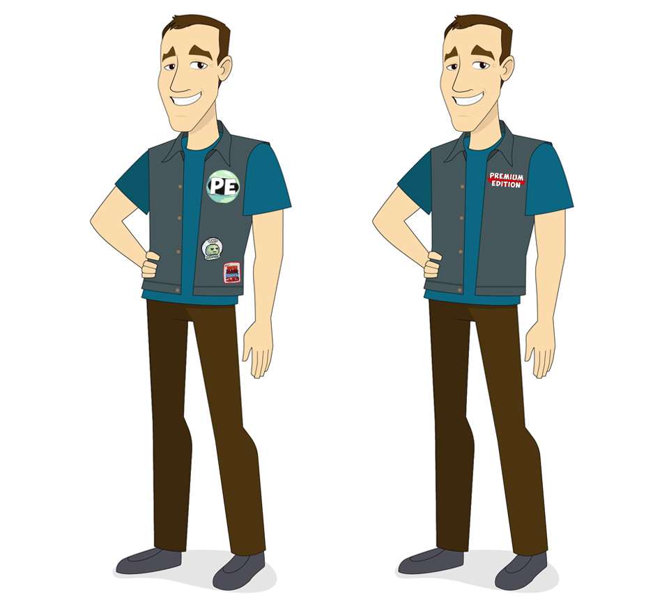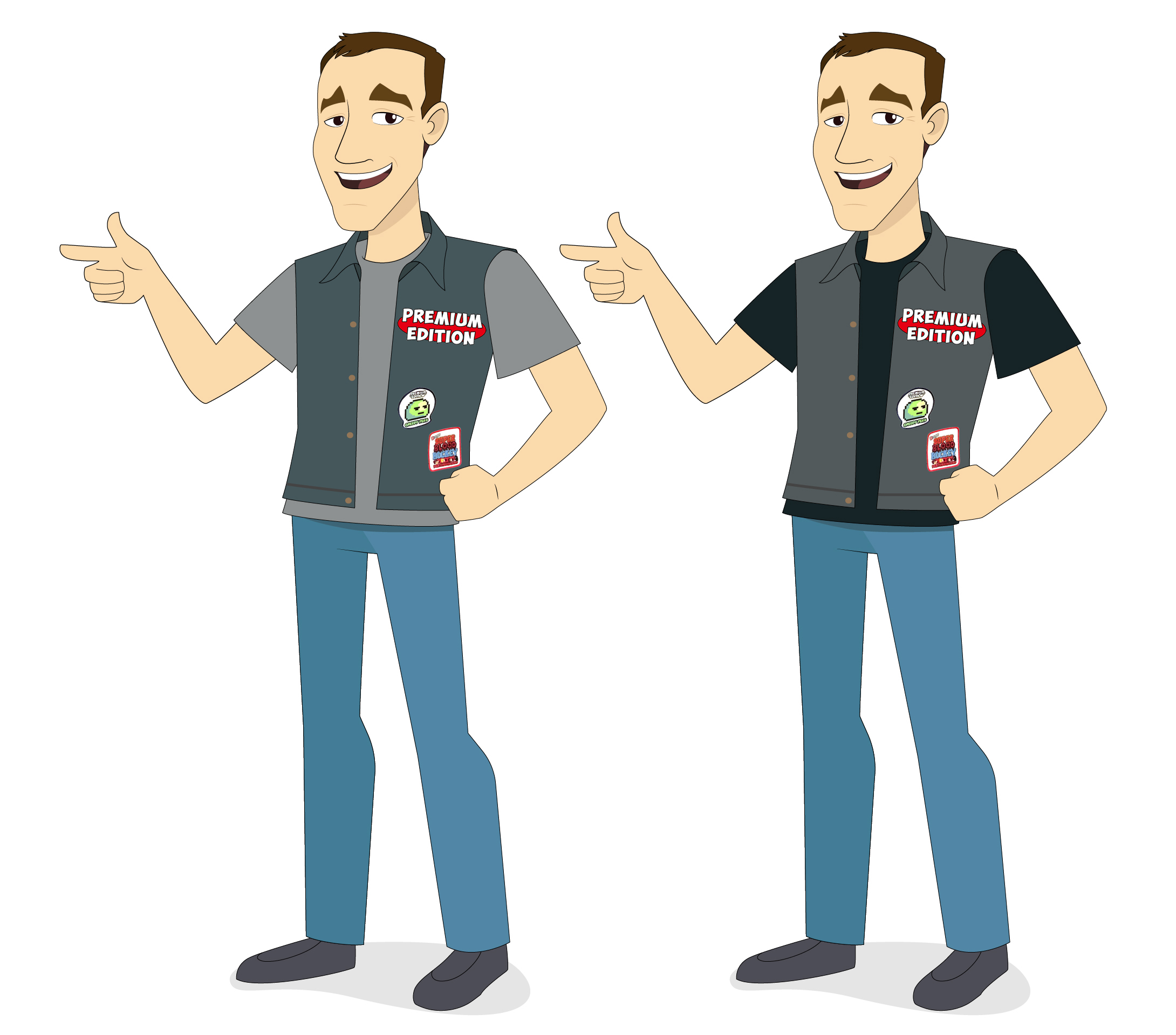Jonathan’s chin is smoothed out a bit and there are 3 blue jean color variations. The first image of Jonathan and Jeffrey together are to show scale of each character.