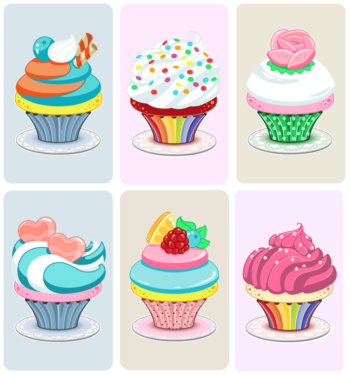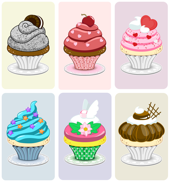 Cupcakes To-Go a card matching game art in progress, final art and different card designs.