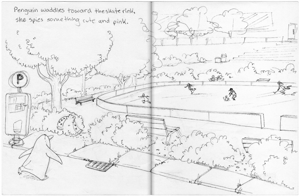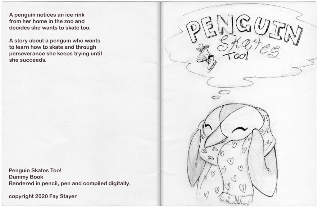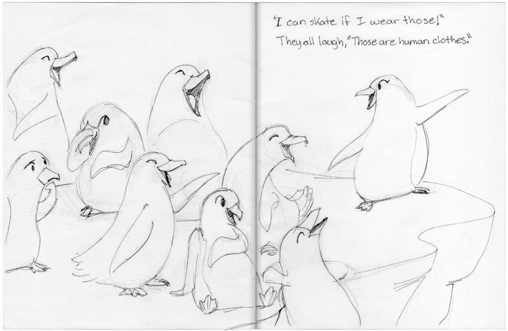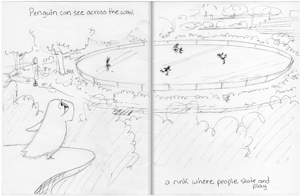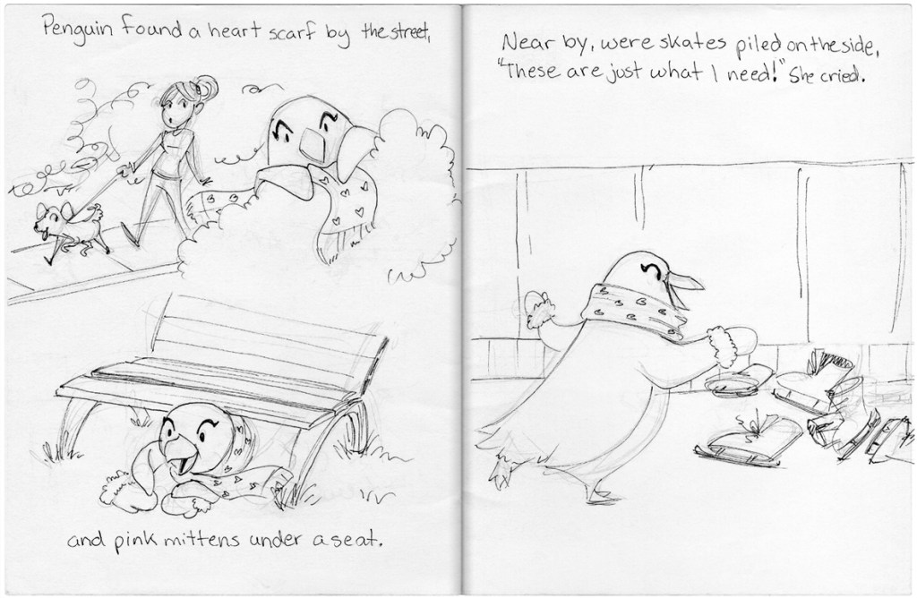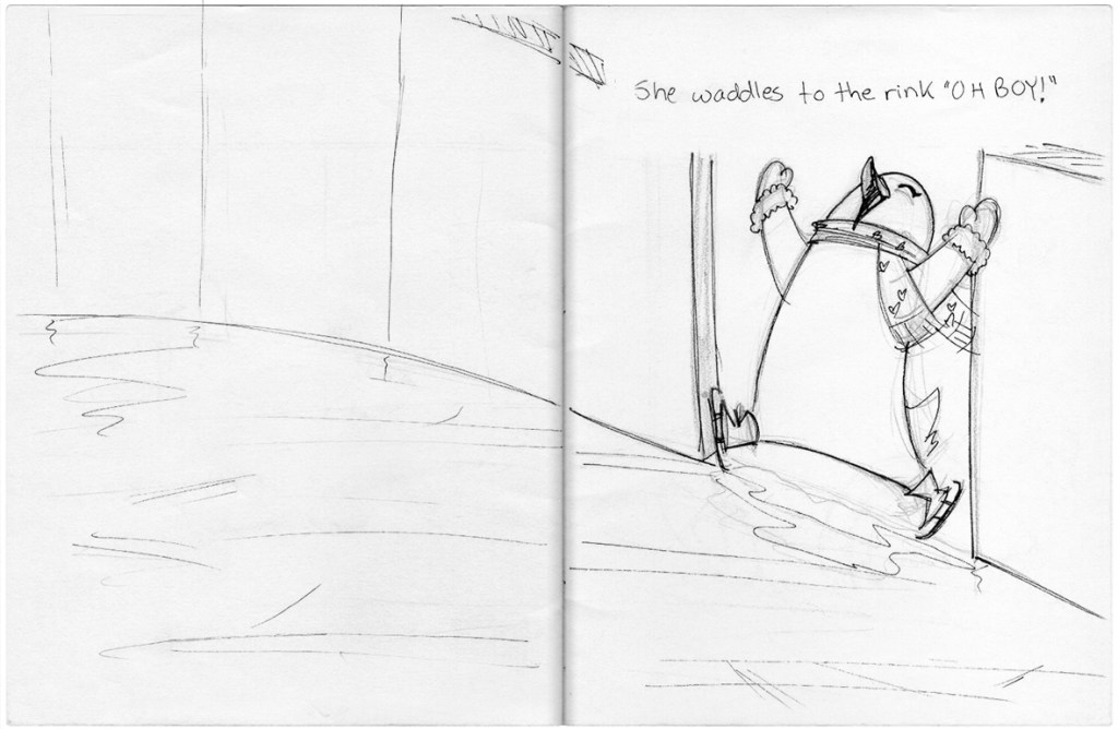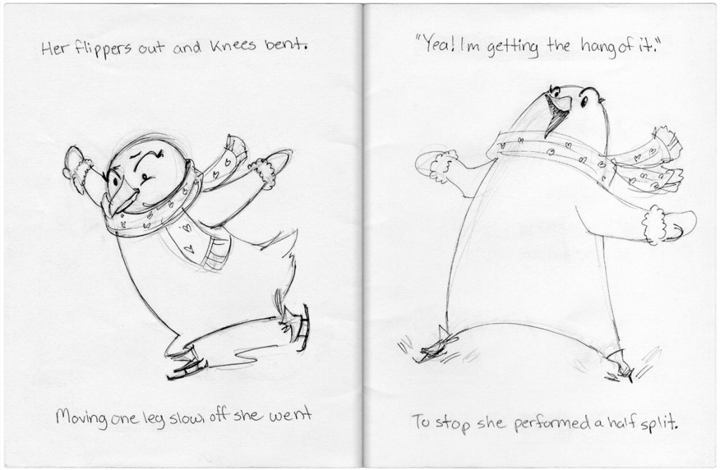 A story project about a penguin that dreams of skating but can only watch from afar up top her rocky cliff in the zoo.