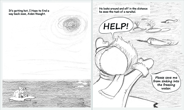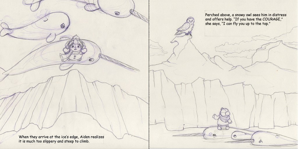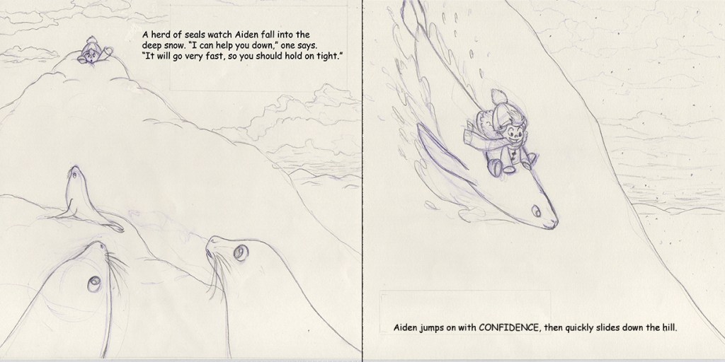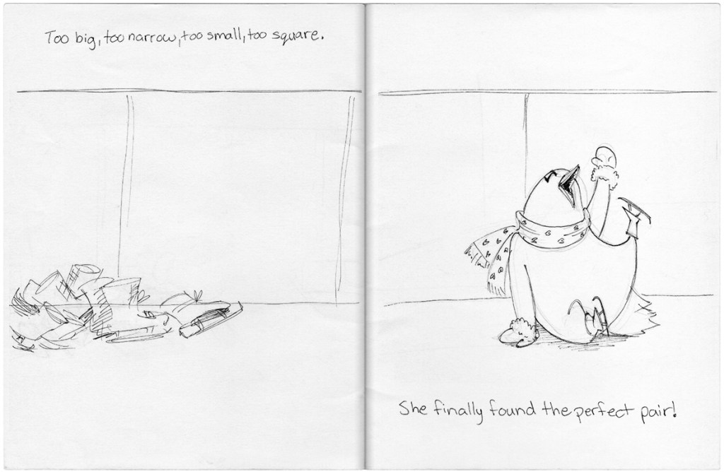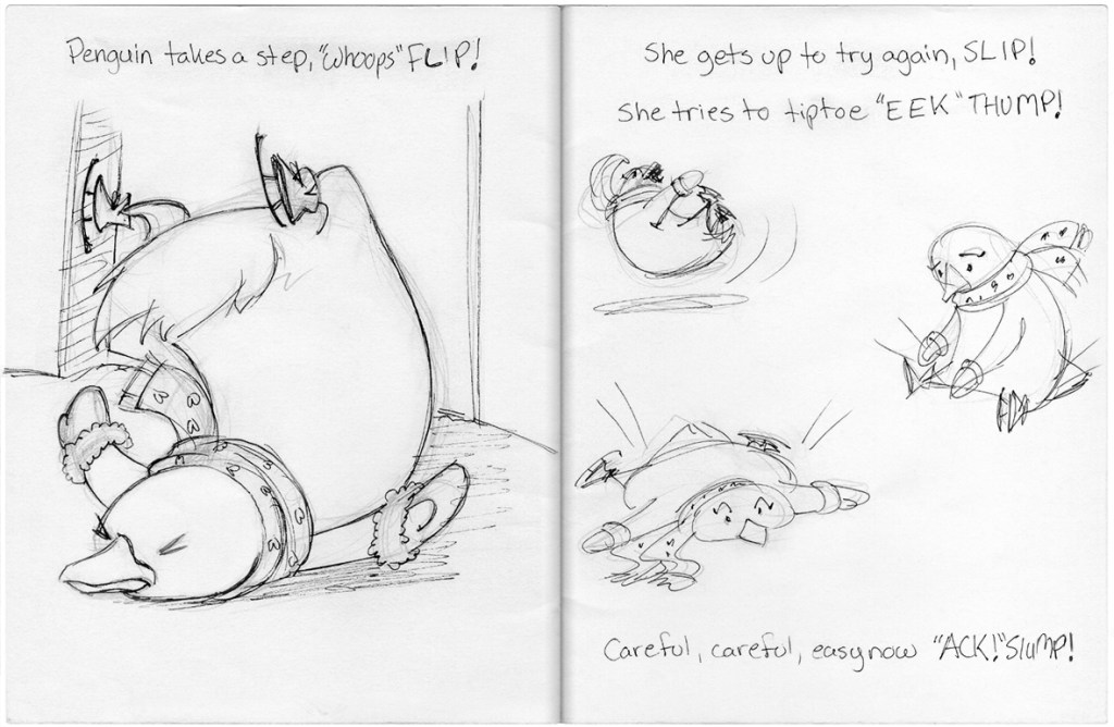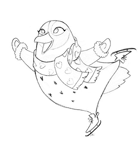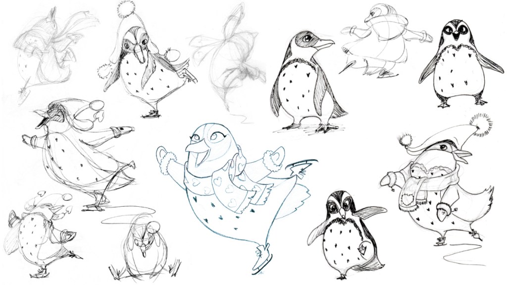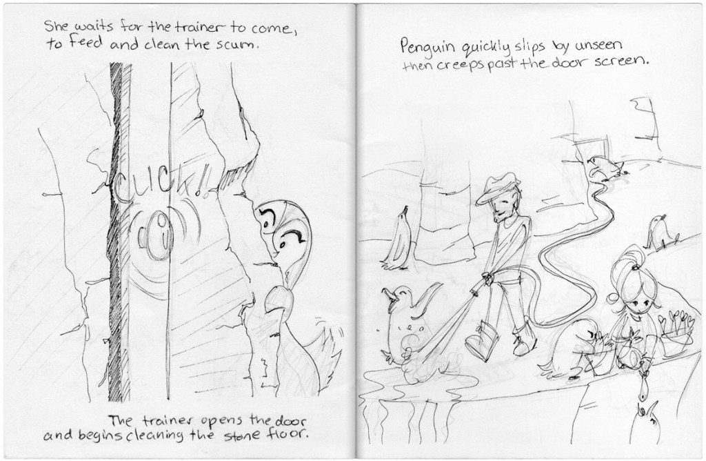 A story project about a penguin that dreams of skating but can only watch from afar up top her rocky cliff in the zoo.