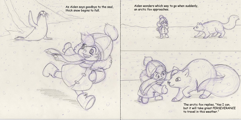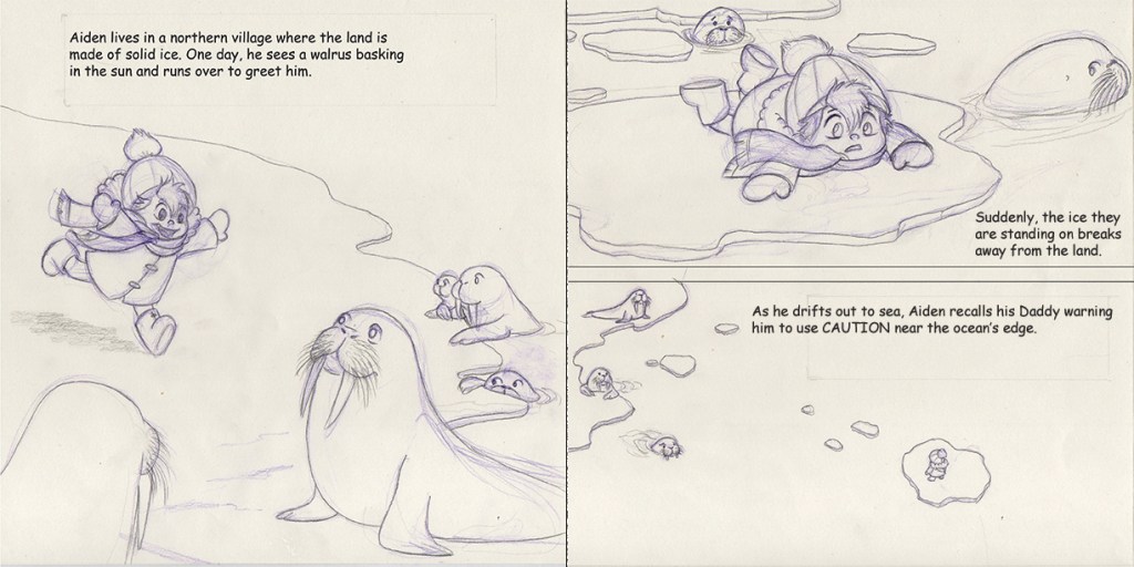 Created a thumbnail dummy book to get a sense for story flow and characters.