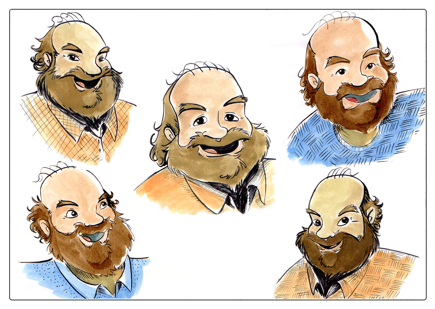 This week I’ve updated Sammy’s kite fly image to fit the facebook cover image, updated author sock and sketched up some more images of your father. I decided to add watercolor to the sketches and ink them to see how they will look. The first 3 with the beard were done before the new photos of your father were sent and the last image uses them.