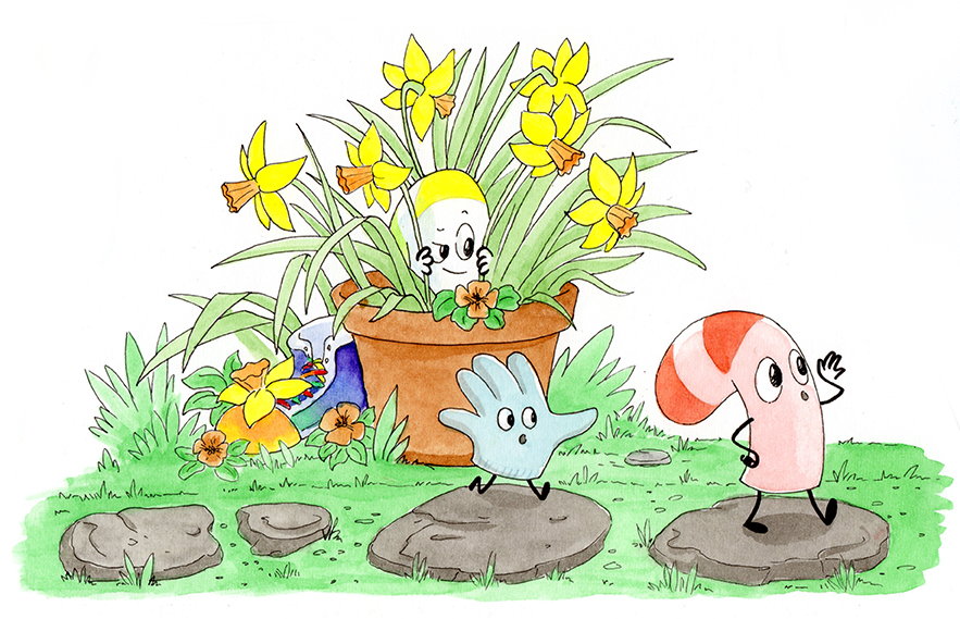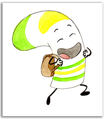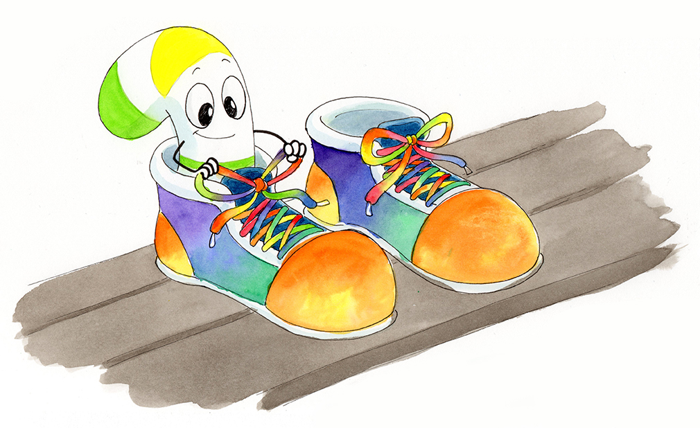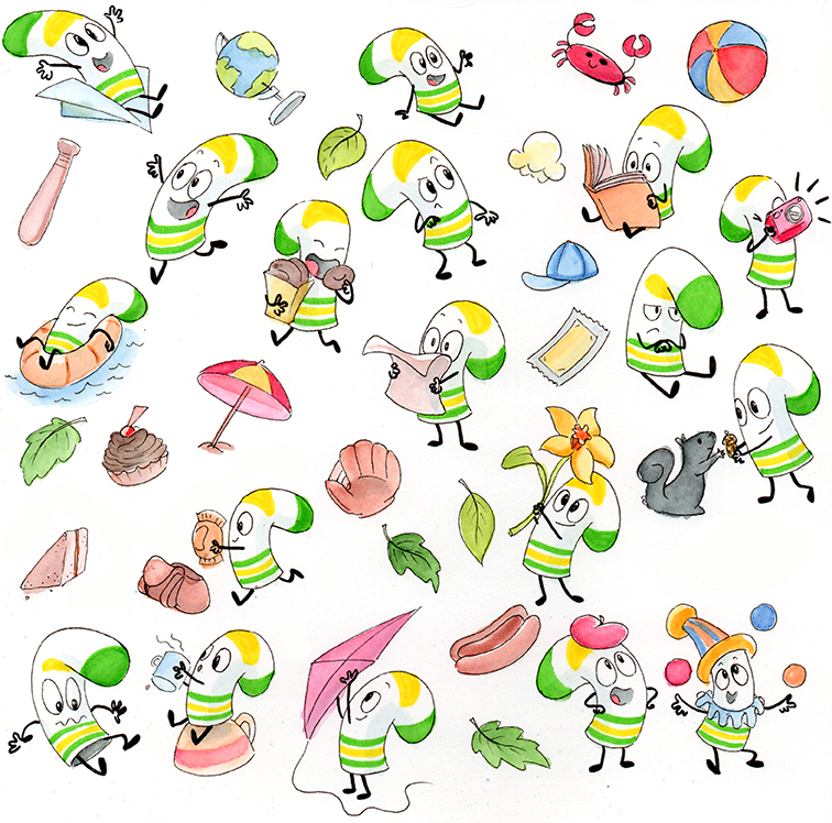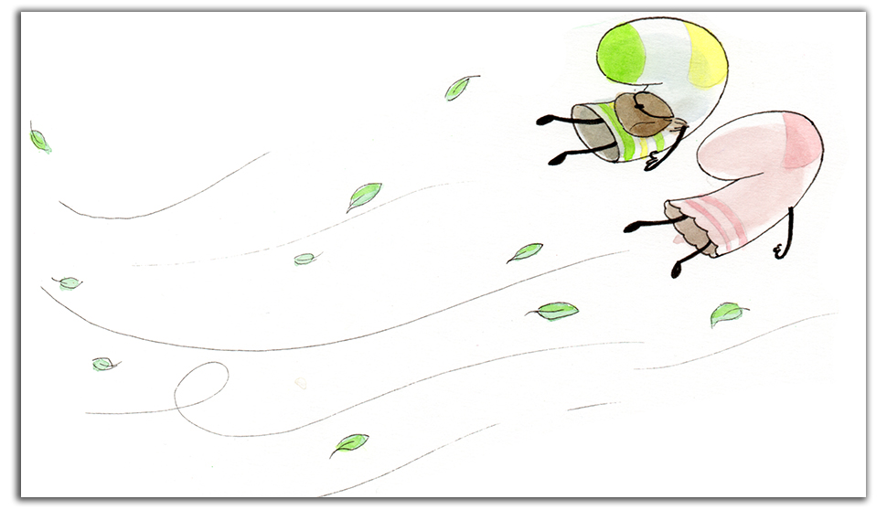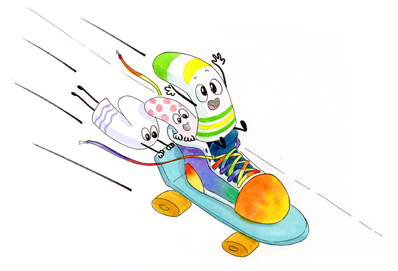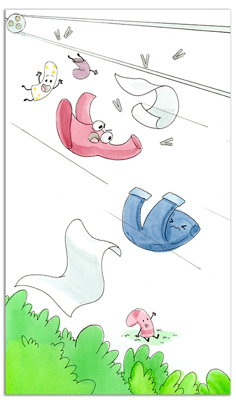 Colored pieces for pages where Sammy rides the laundry line and ready to take off with the wind to his first destination. I ended up switching his heel color(yellow) with his toe color(green) so green doesn’t interrupt his eye brows since green is a darker and the eye brows may not be as apparent. Let me know what you think and if you prefer the heel green I can change it.