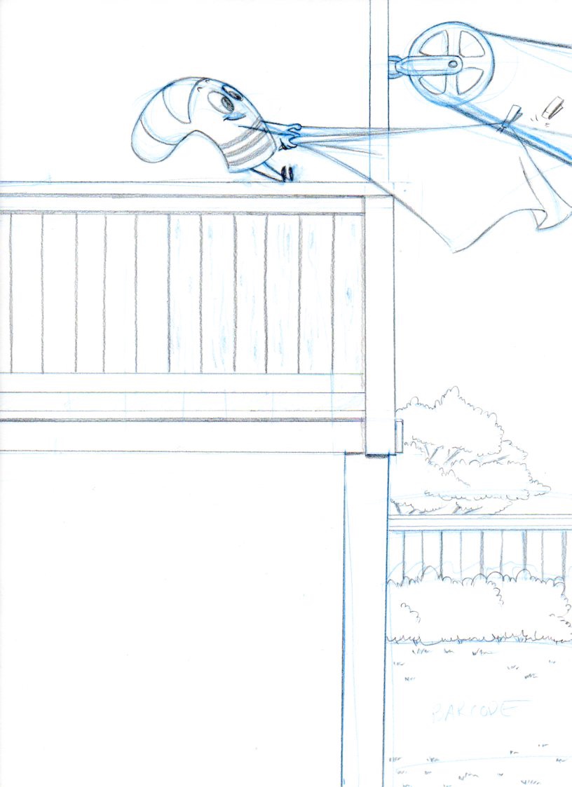 These three images below introduce Sammy as a daring fellow and I want to give a sense that he is willing to attempt daring acts and show his adventurous side! Here I have him zipping down a clothesline and possibly causing a mess behind him with sheets falling off their hooks. I like most of the poses but haven’t settled on one yet.