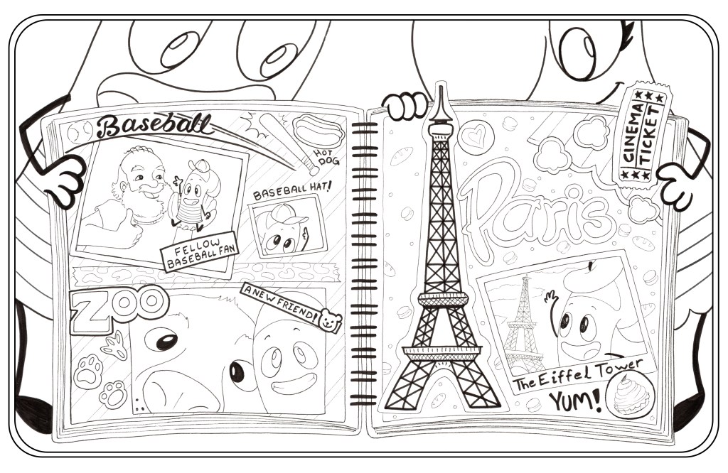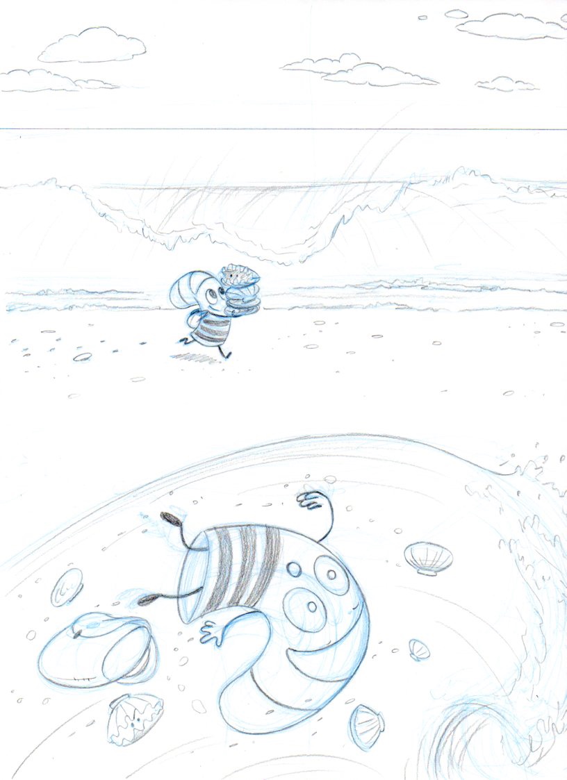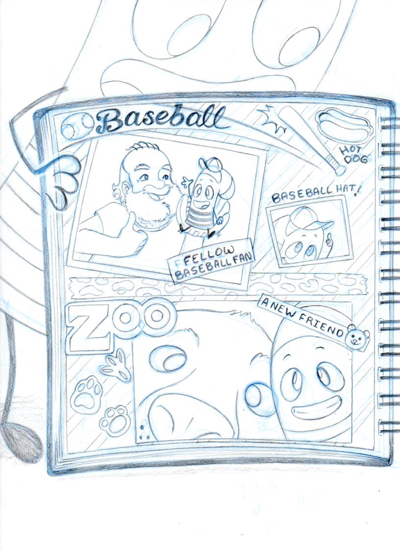 Here is an updated version of the slideshow with the beach scene, Sammy pictured with your father in the scrapbook, the zoo scene has changed a bit with the bear and added our sock characters at the end. I feel it’s ready to move on to the next stage of development which is creating full lined versions. There is plenty of time for changes until color starts.