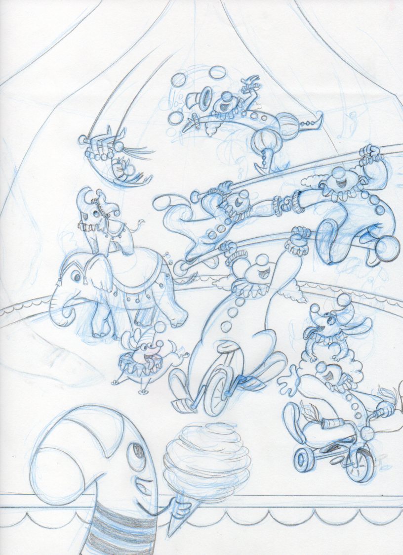 There are additional changes needed for some pictures since the wording has changed enough to not quite match what is going on in the current pictures. The park page for example, instead of having him sitting atop of the slide I will change the angle and have him sliding down a long slide to better match the story’s wording. Also the circus with the elephant taking his cotton candy, it will have more elephants since it mentions a whole band of them. I will keep you updated.