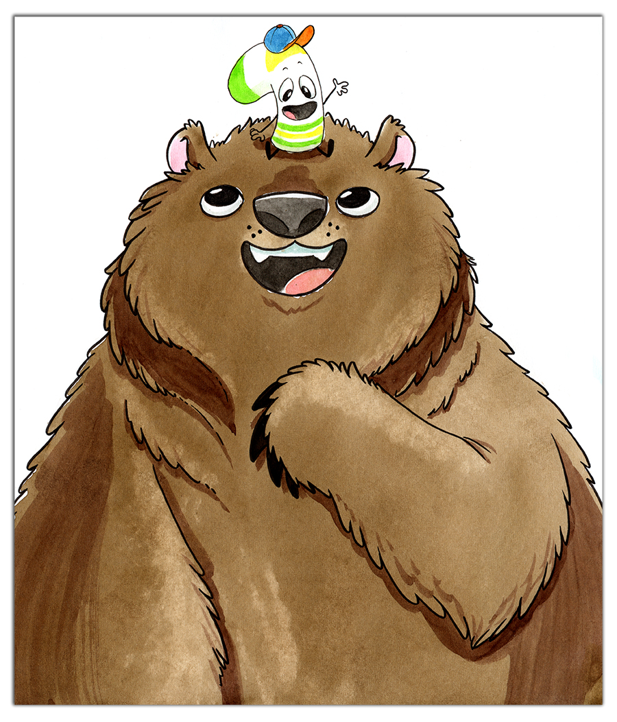 Some painted pieces and a page with Sammy sitting on top of the slide is currently close to finishing. I’ve also added the bear image as a possible black lined coloring page. I also tried a new font for the words which is a bit softer than the previous one and you can see it on the slide page.